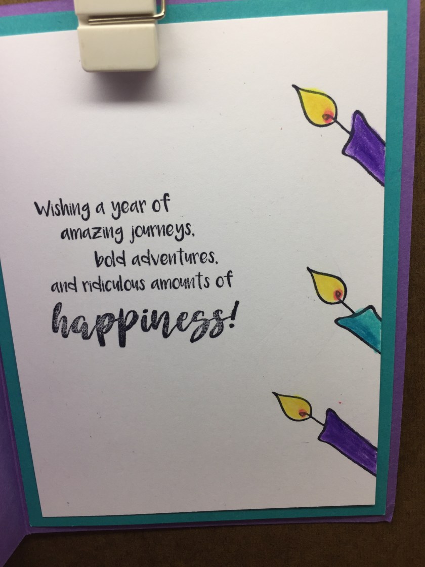 Stamps Used: B302 Wish Big; C302 Blow out Candles; DD91 Short Candles; EE53 Skinny Candles; F235 Triple Flag Banner; F259 Make a Wish Banner; F269 Ridiculous Happiness;