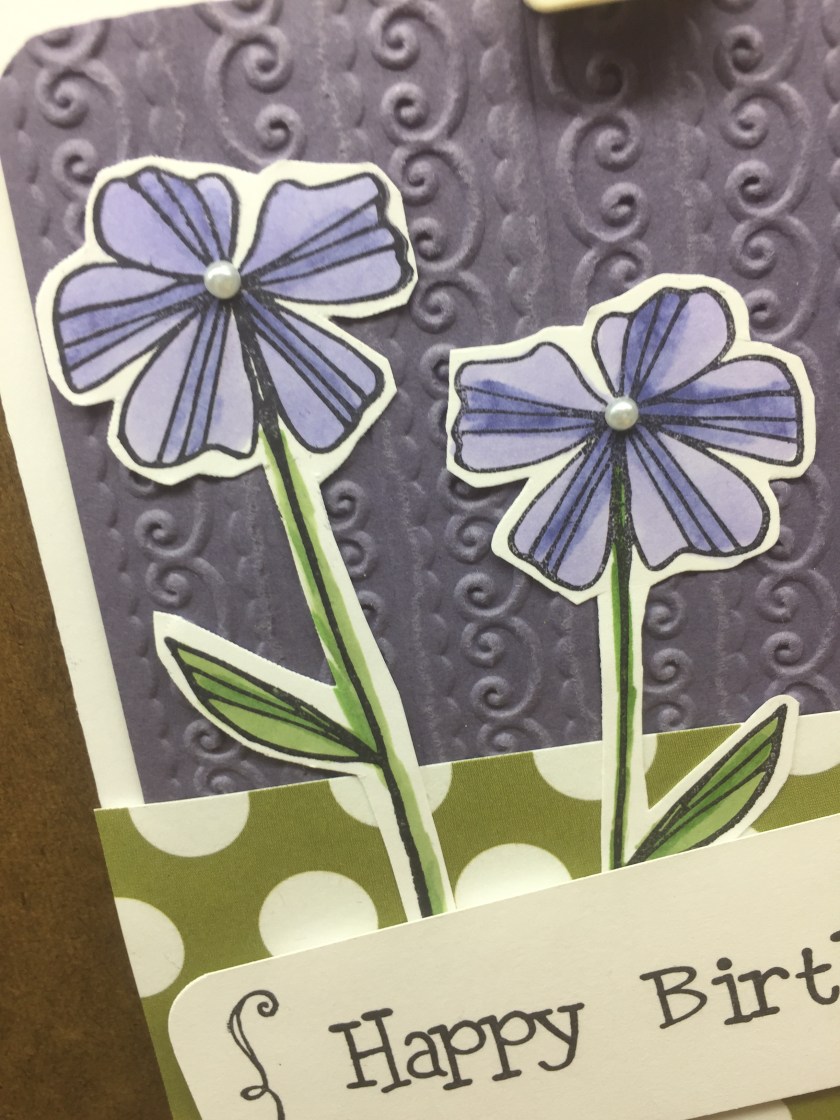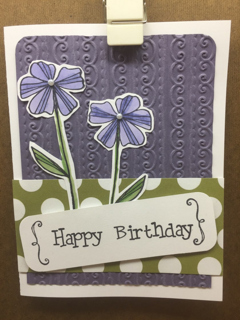 Stamps Used: DD92 Parenthesis; HH32 KB’s Pansy Lg; E145 Birthday Hold Dear; E144 Happy Birthday;