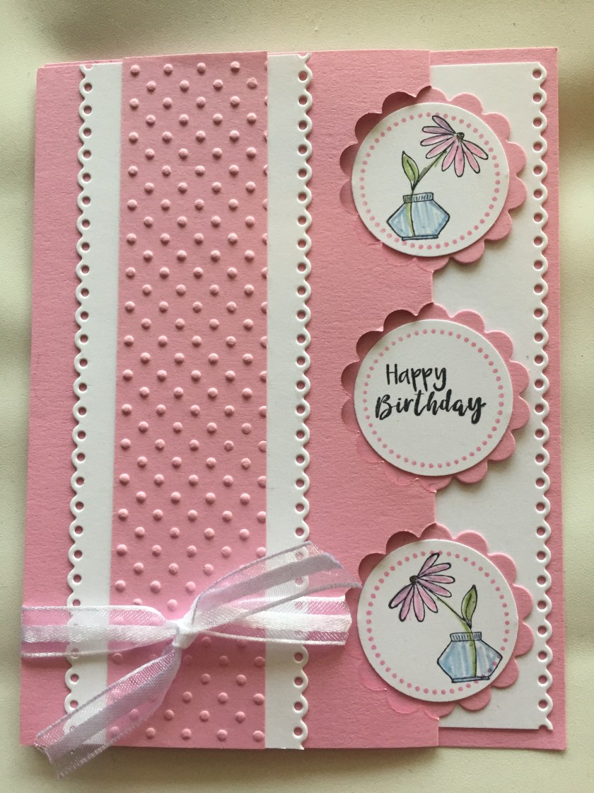 Stamps Used: B308 Happy Birthday; CC82 Potted Black Eye Susan Daisy; EE25 Dots & Circles 1.25;