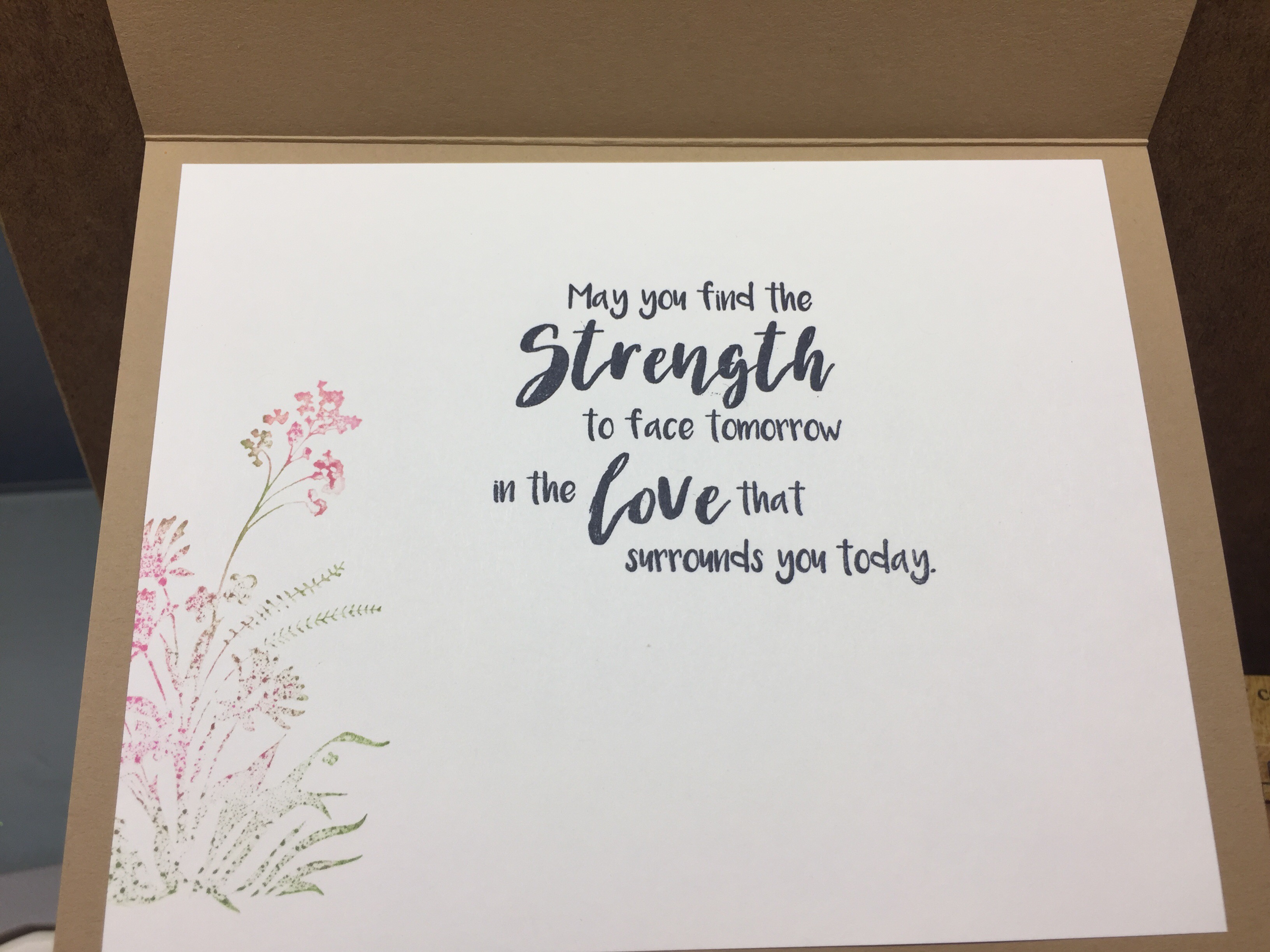 Stamps Used: D335 Heartfelt Sympathy; H085 Floral Garden Lg; F275 Strength and Love;