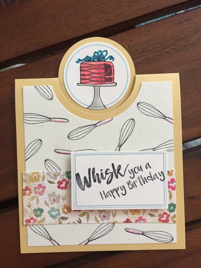 Stamps Used: A255 Whisk Sm; DD95 Fondue Cake; FF50 Lines & Dot Circles; F210 Fancy Rectangle; E312 Whisk Happy Birthday;