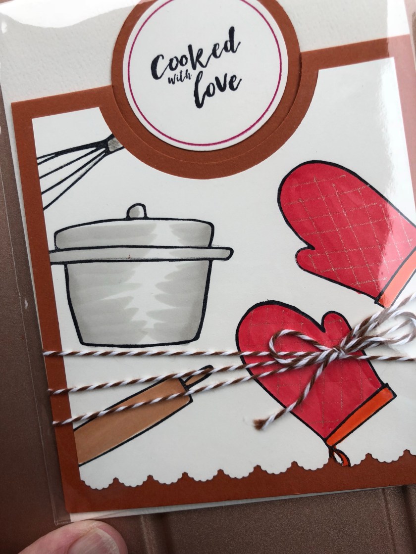 Stamps Used: DD100 Oven Mitts Lg; J037 Baker w Love Border; Baking Fun Cube; FF50 1.75 Dots & Lines;