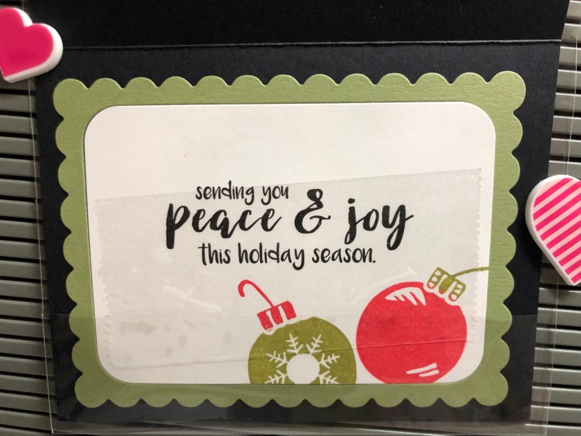 We needed to add a Christmas card to our make n take’s and I love this empty joy stamp…it’s so versatile.