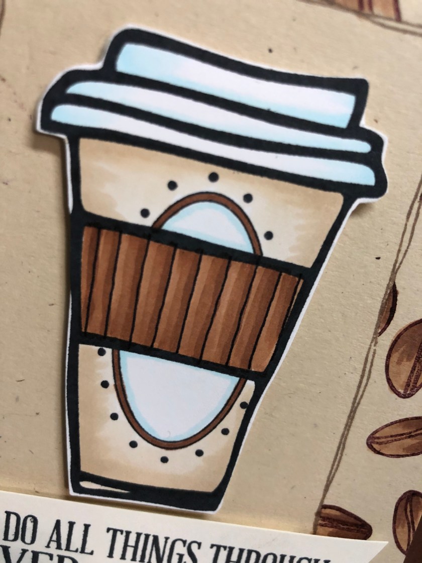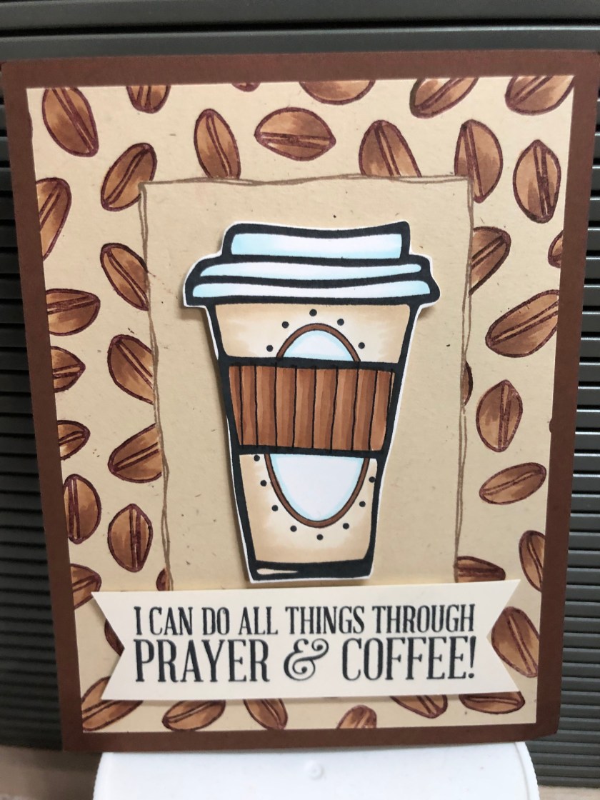 Stamps Used: G316 Cappuccino Cup Lg; E293 Coffee Beans; F202 Swiss Dot Oval SU; F231 Prayer & Coffee;