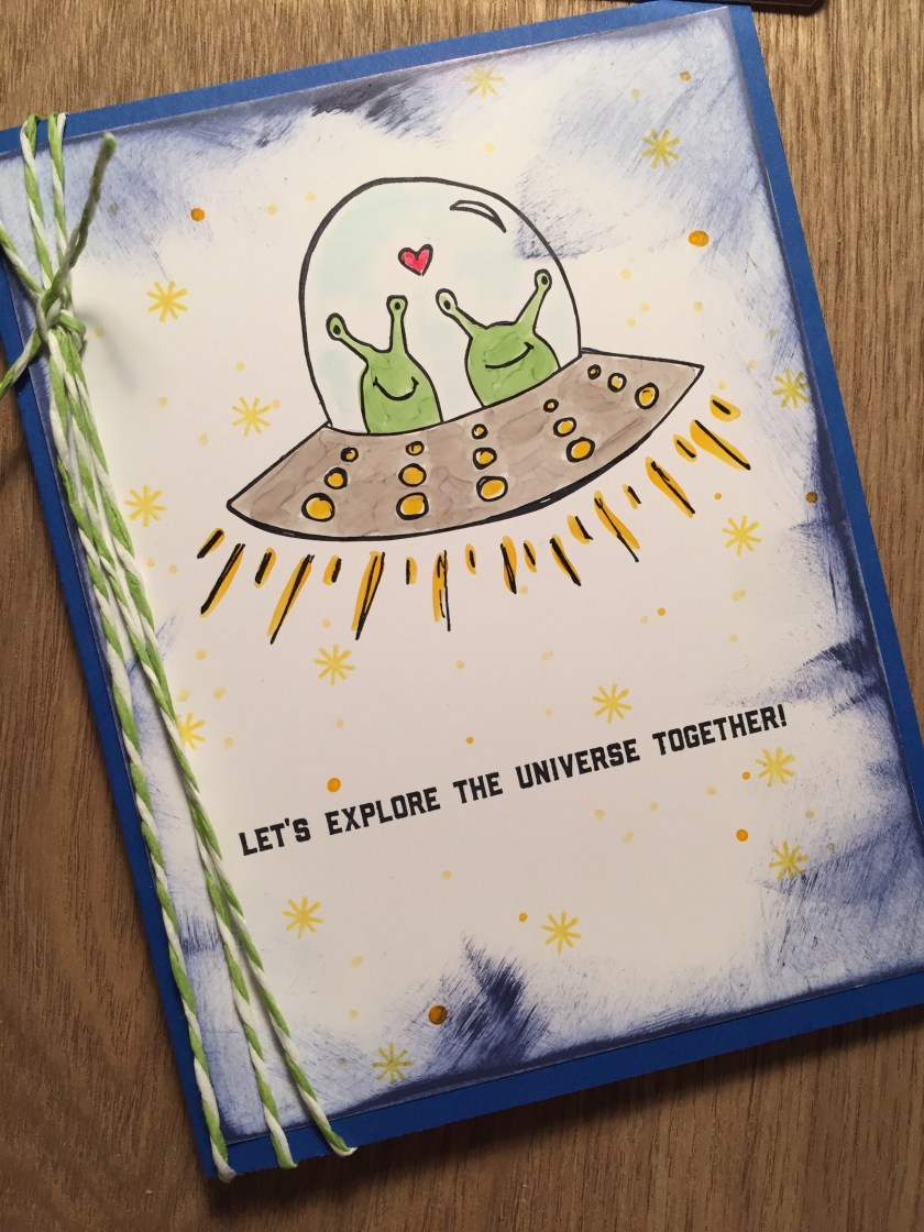 Stamps Used: E338 Explore Universe; G362 Alien Love; BB22 Snowflake Fun Cube; AA15 Dual Dots Mini;