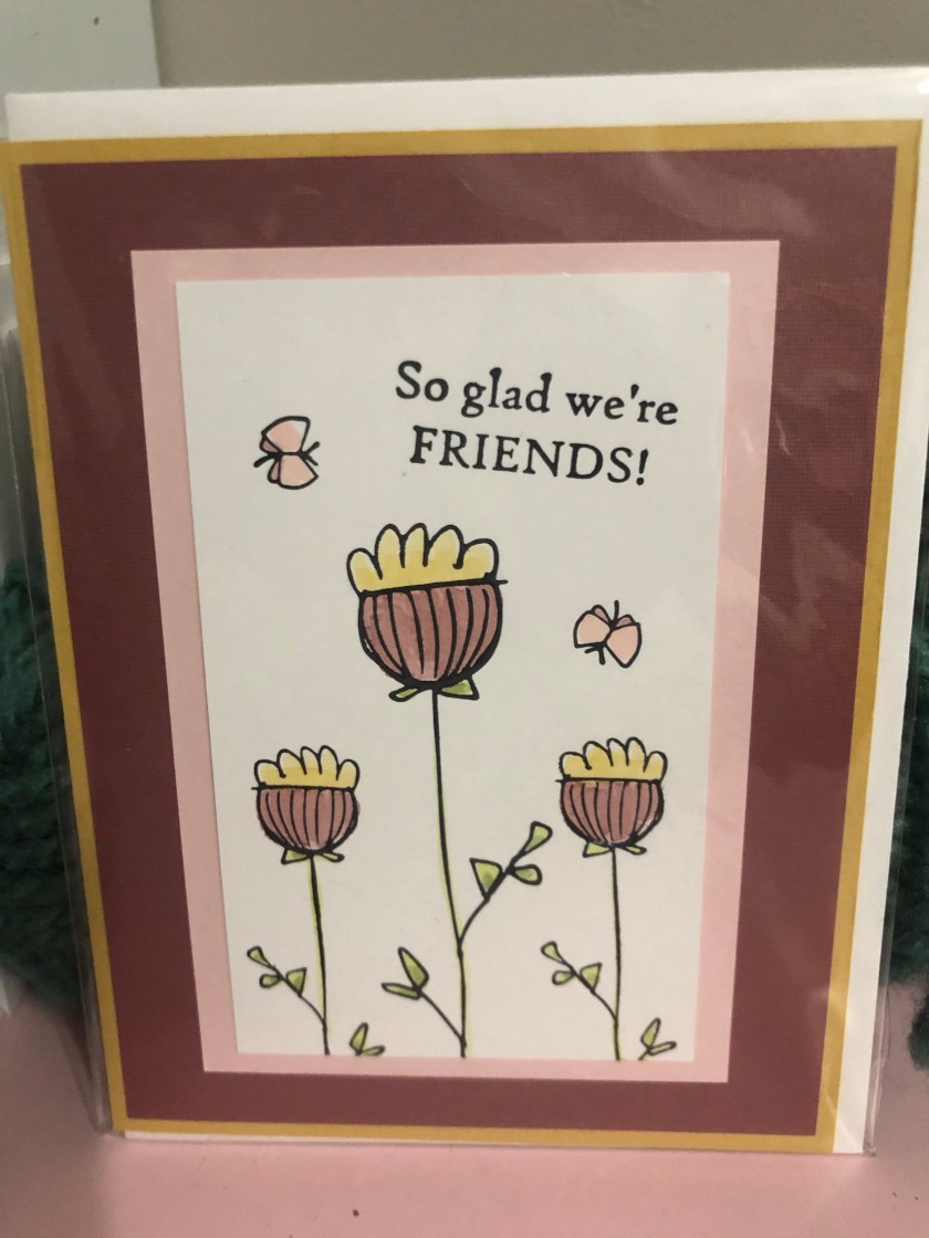 Good Morning! I love this card! The pictures might not be the greatest but I love the colors. My friend since high school mailed me a really cute cup so I wanted to send her a thank you card. I found this in my daughter’s stash!! Love my daughters stash 😊
