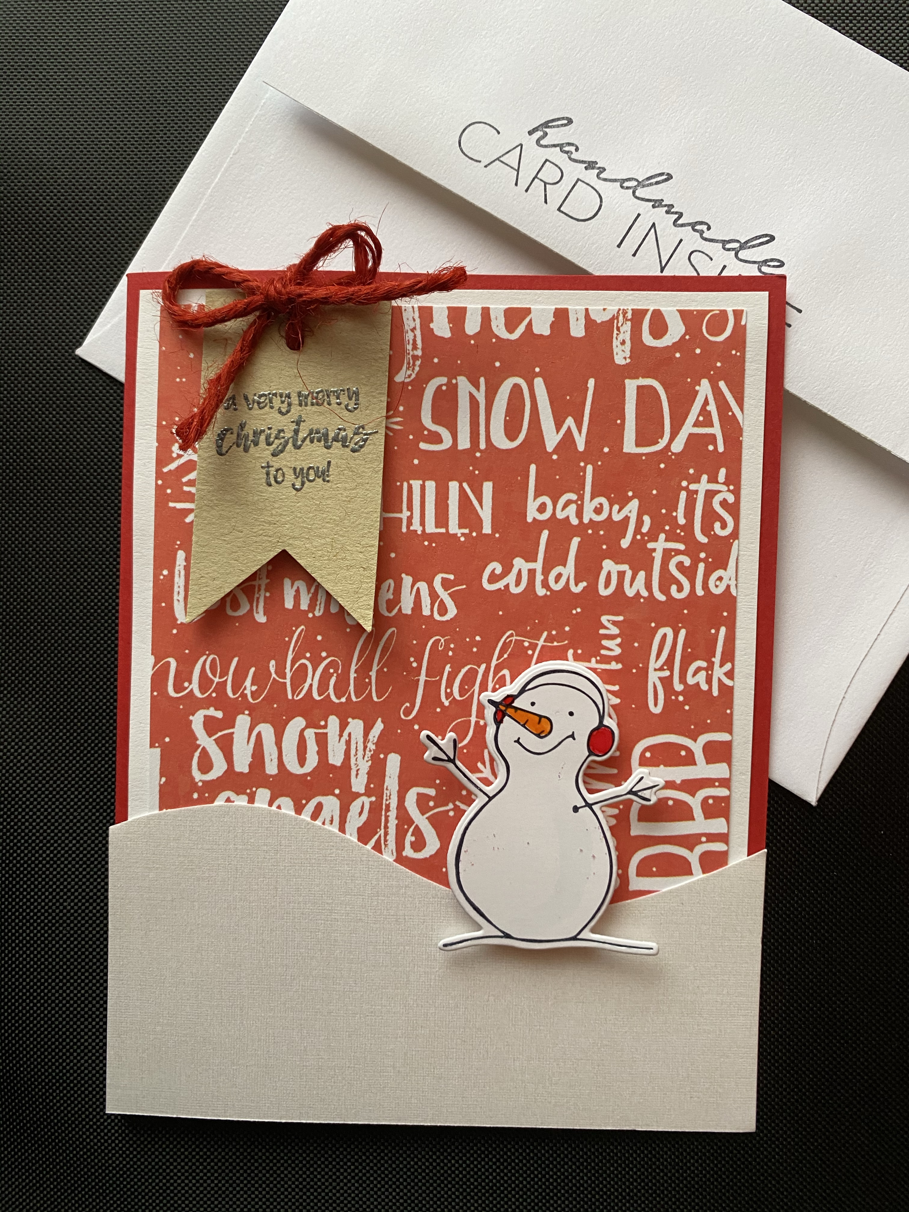Stamps and Cutting Dies Used: EE47 Ear Muff Snowman; C311 Very Merry Christmas; C320 Handmade Card; C245 Handmade in WI;