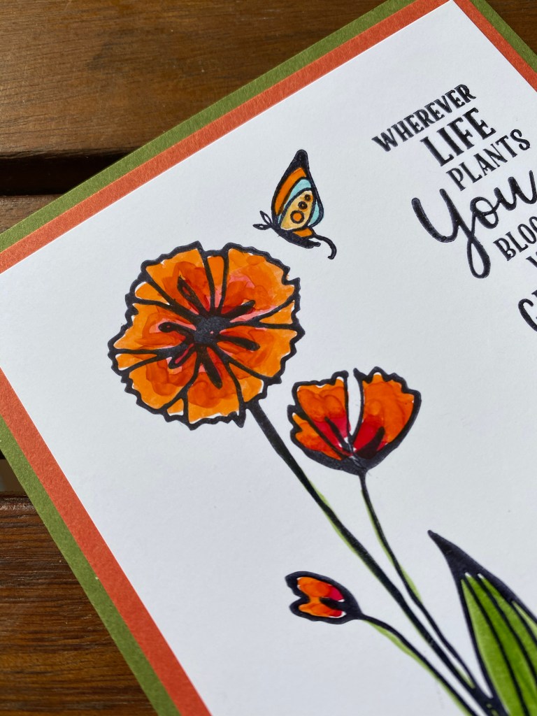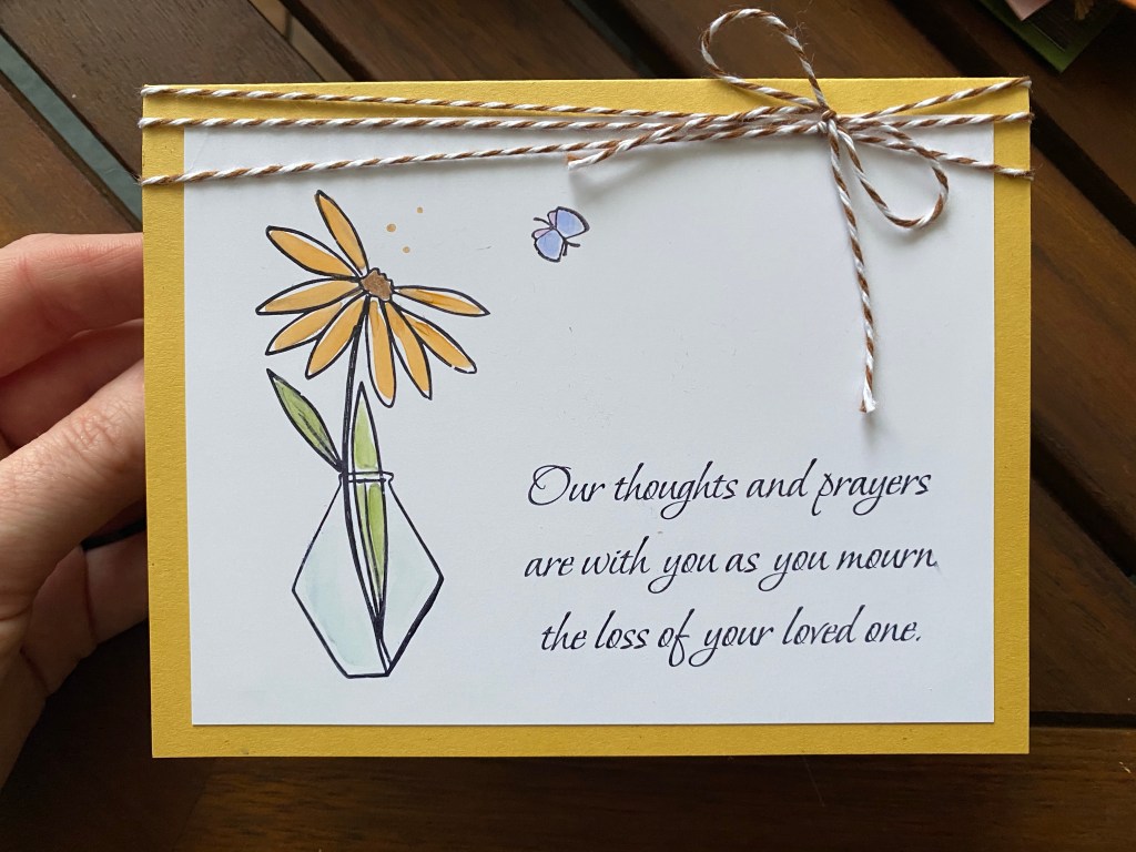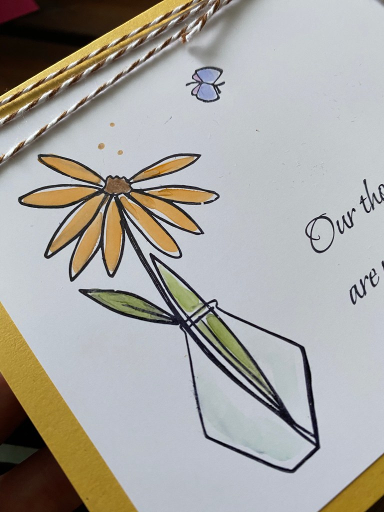 Stamps: F255 Our Thoughts Prayers, GG51 Daisy Triangle Vase Lg, AA31 Single Butterfly Mini