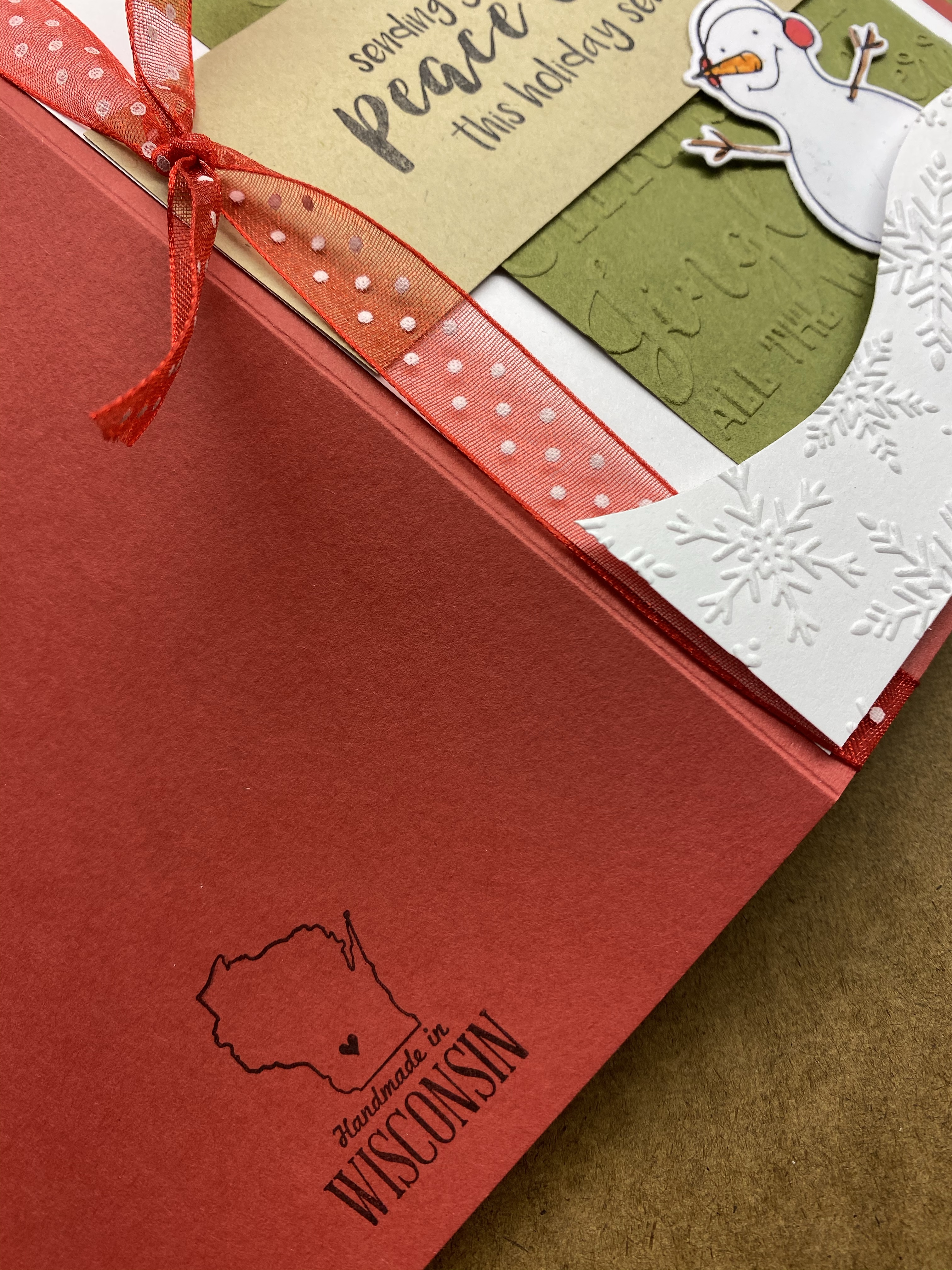Stamps & Dies Used: F265 Peace & Joy; EE47 Ear Muff Snowman; C245 Handmade in WI;