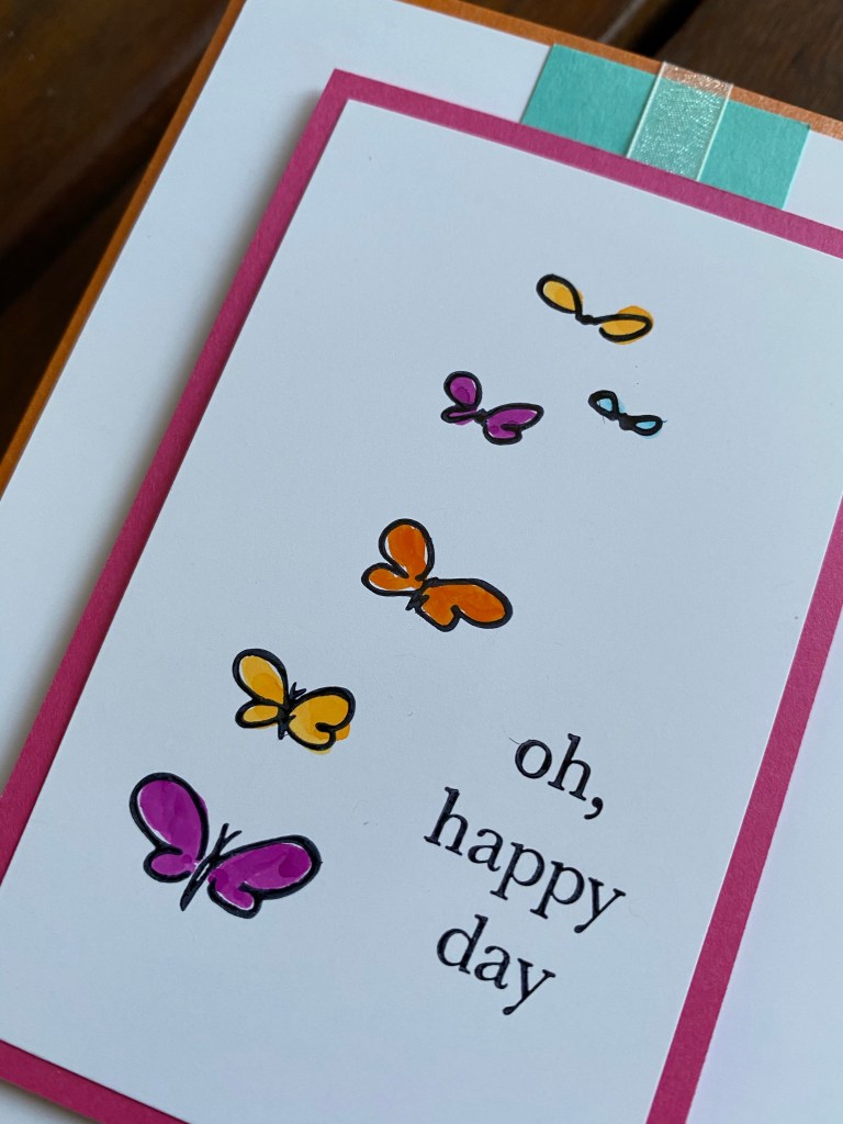Stamps: B271 Oh Happy Day, E343 String of Butterflies