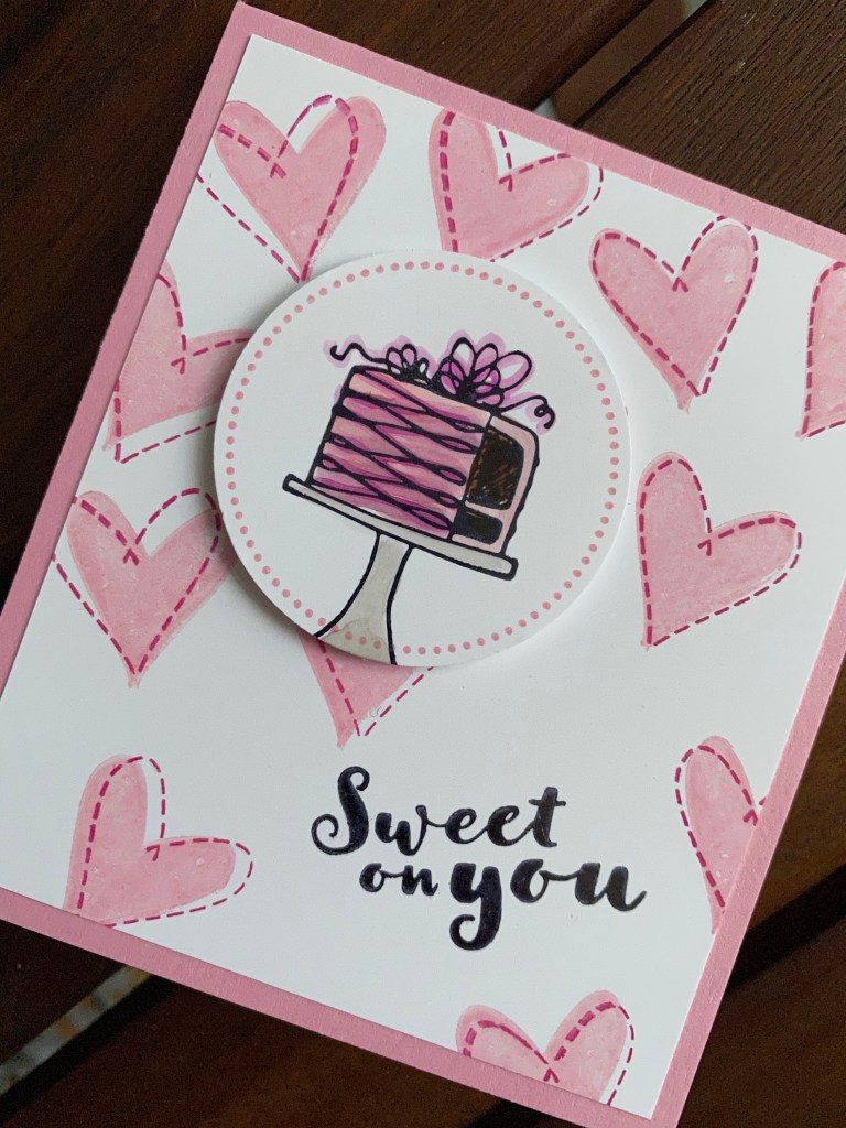 Stamps (additional images in card below): A186 Solid Heart, A188 Stitched Heart, DD95 Fondue Cake,