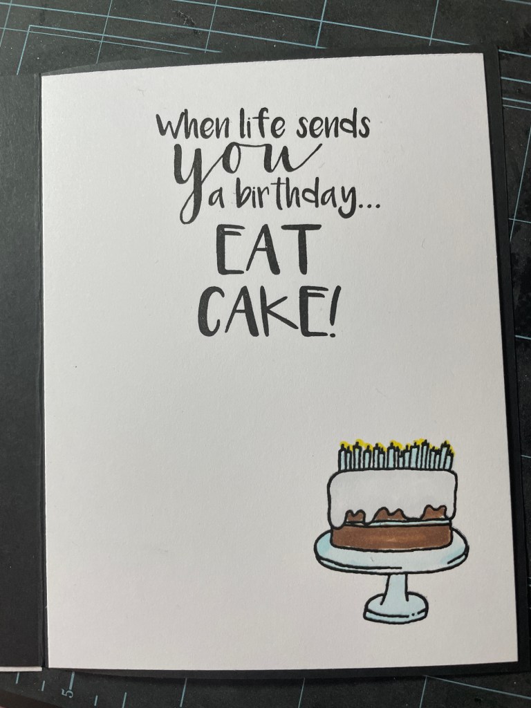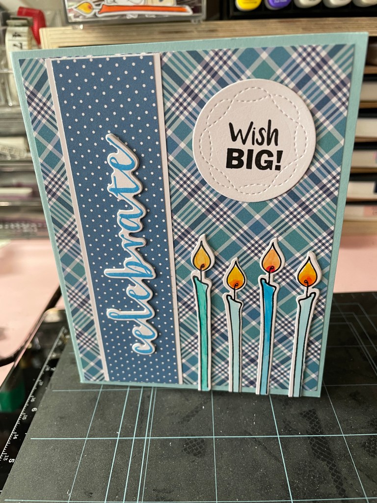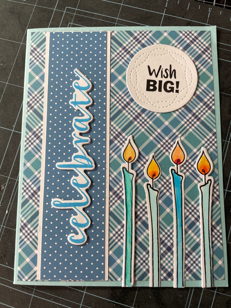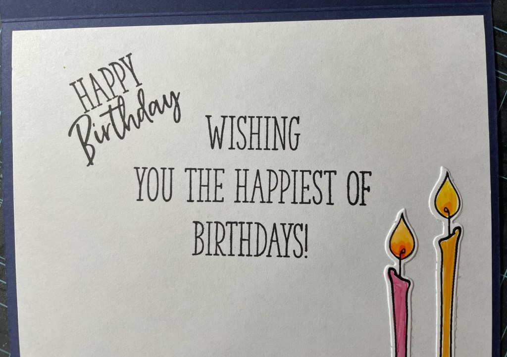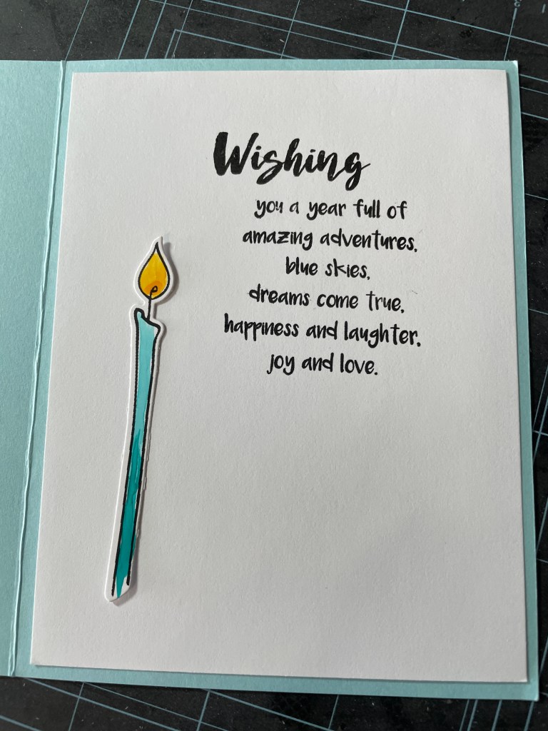 Here is the last of my four square cards! I’m ready to move on😊 This was a fun card. I always have candles stamped, colored, and cut out for when I need a quick birthday card.