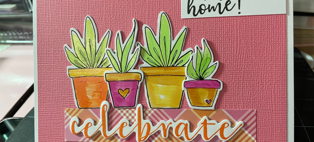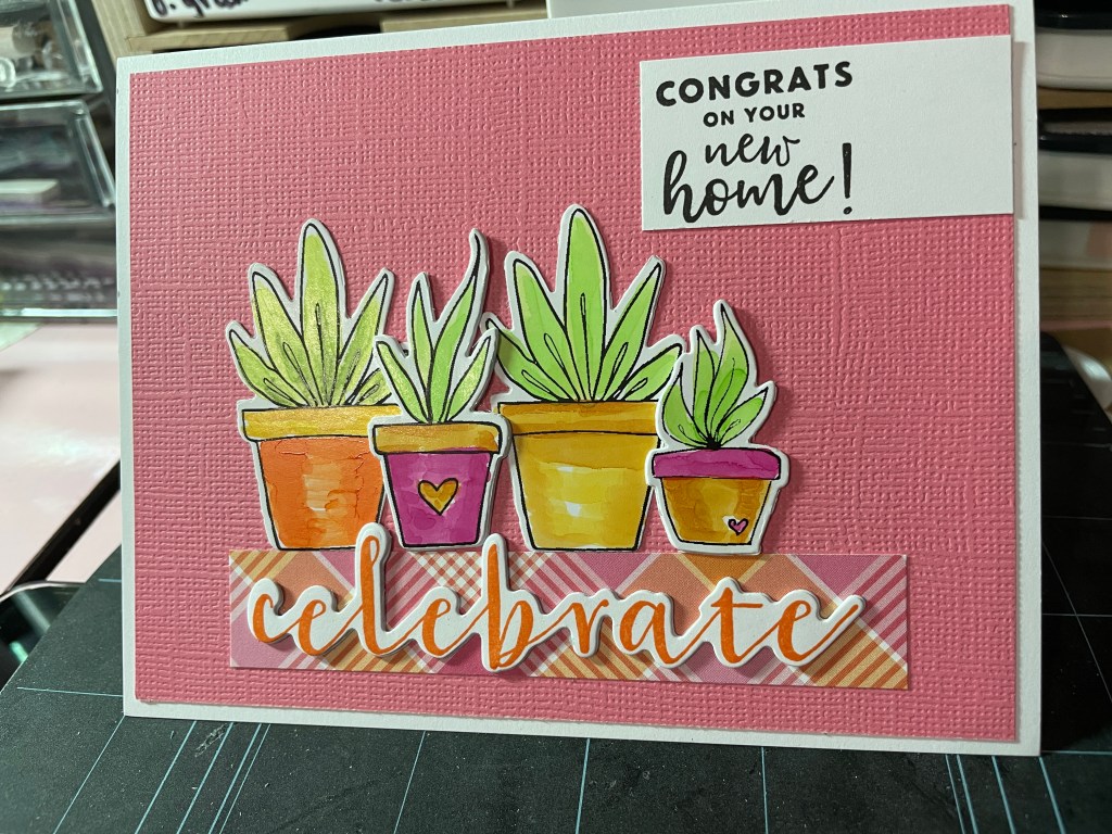 Good Day! I started working on this card a long time ago and it’s been sitting on my desk with parts and pieces being put on it and being taken away. I started to do a graduation card with the Celebrate and then I stuck it on this card and really liked it! I think it might be much cuter in real life than in pictures!