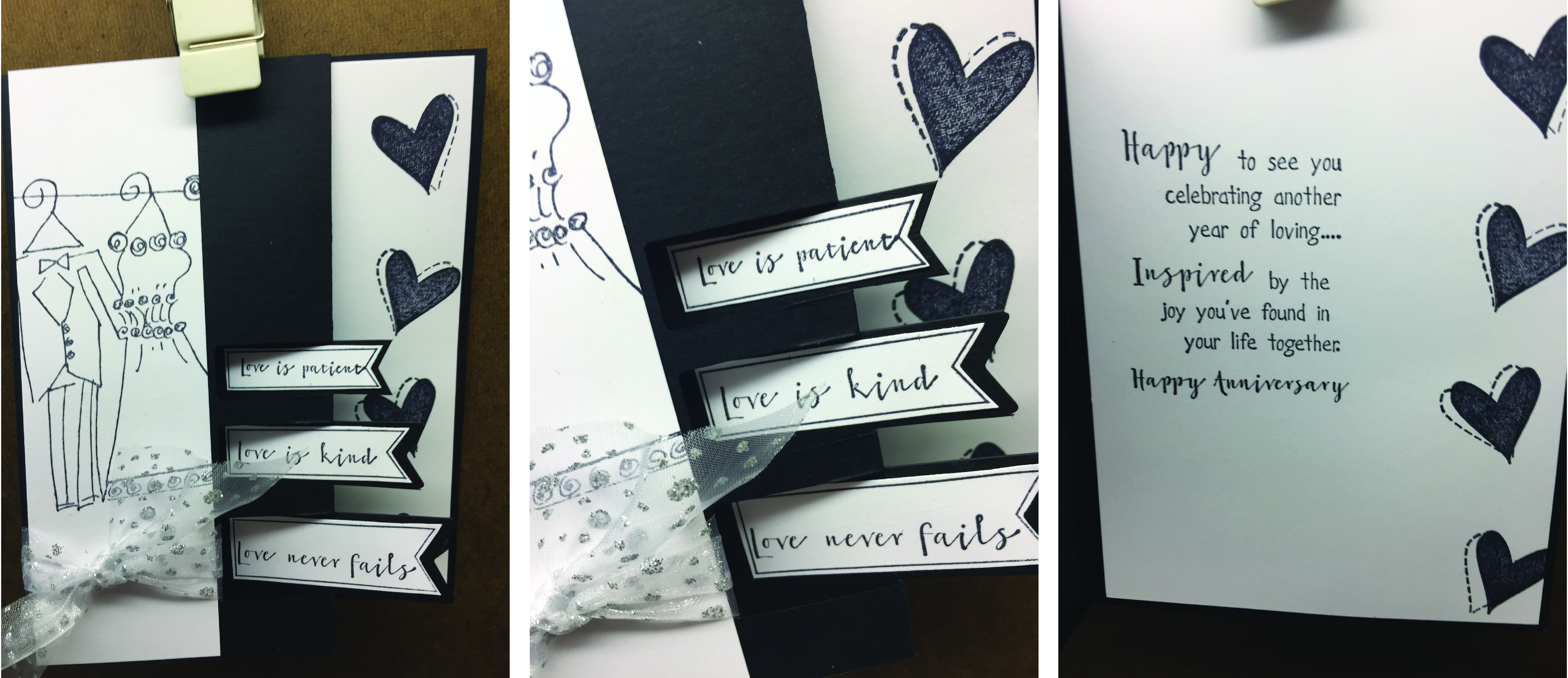 A triple flag card with gray and white, such a pretty color combo! I love it for wedding and anniversary cards. For the hearts and flag outlines, I used the Encore! Ultimate Metallic ink pad in champagne. Links are below!
