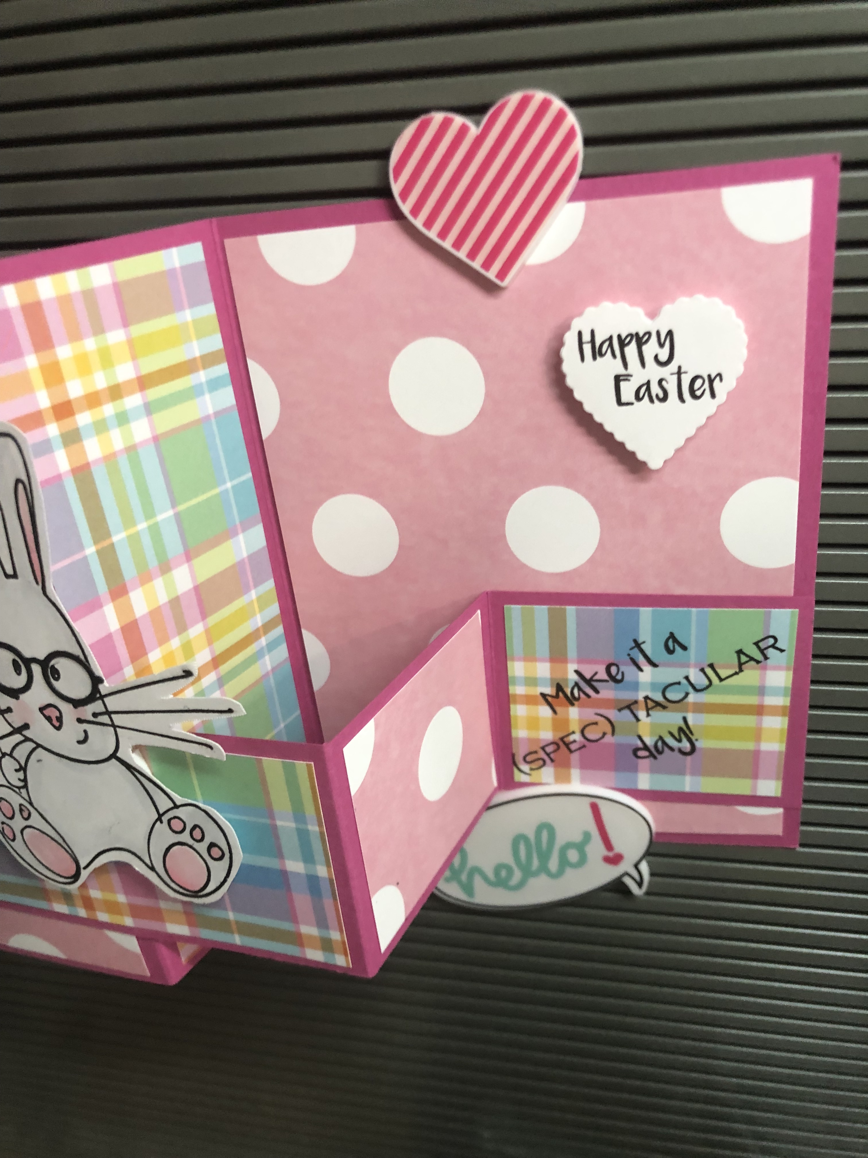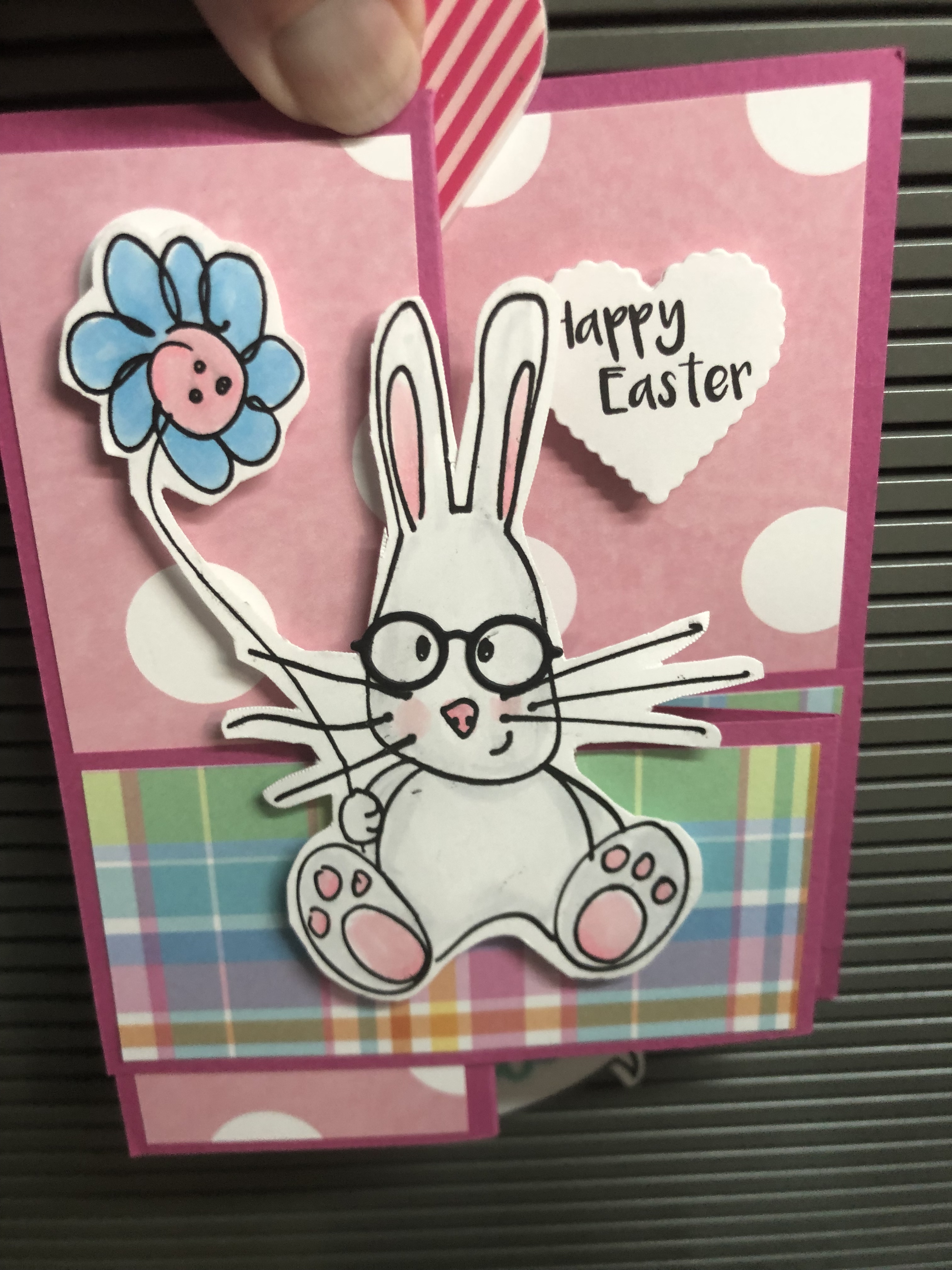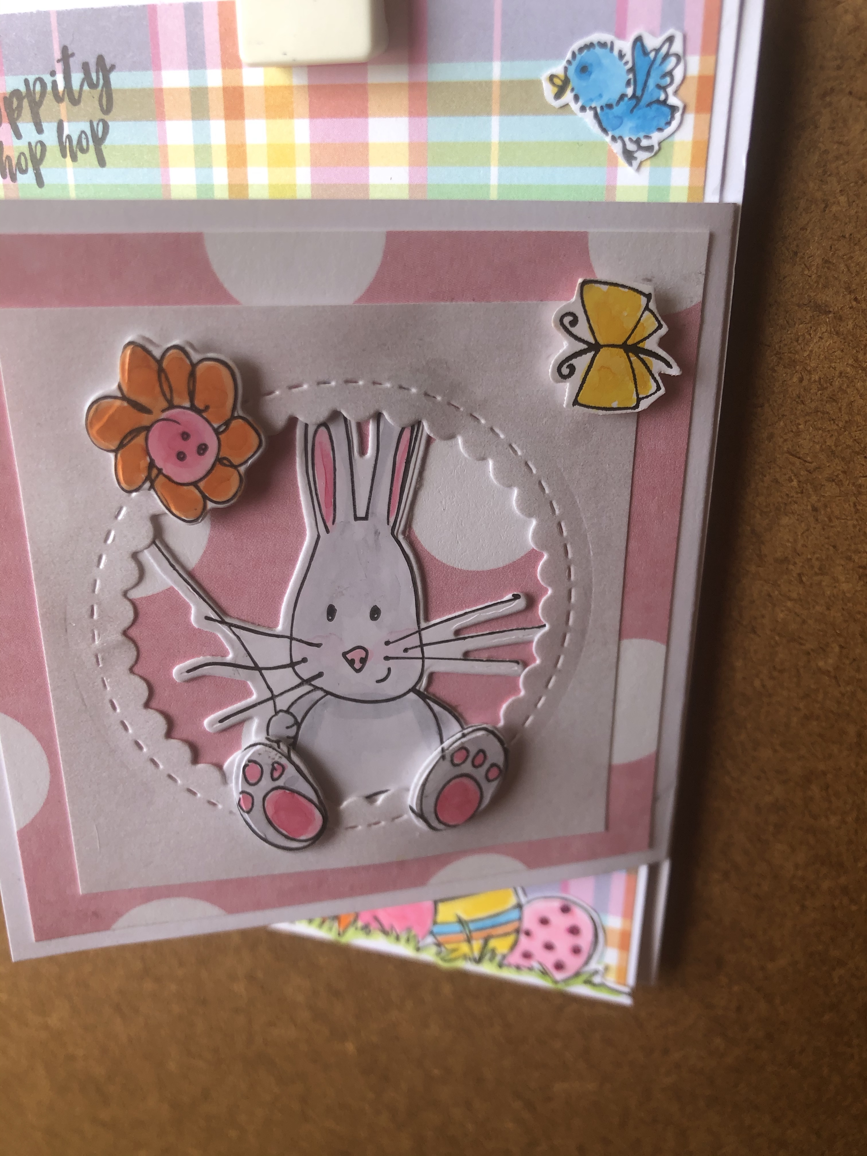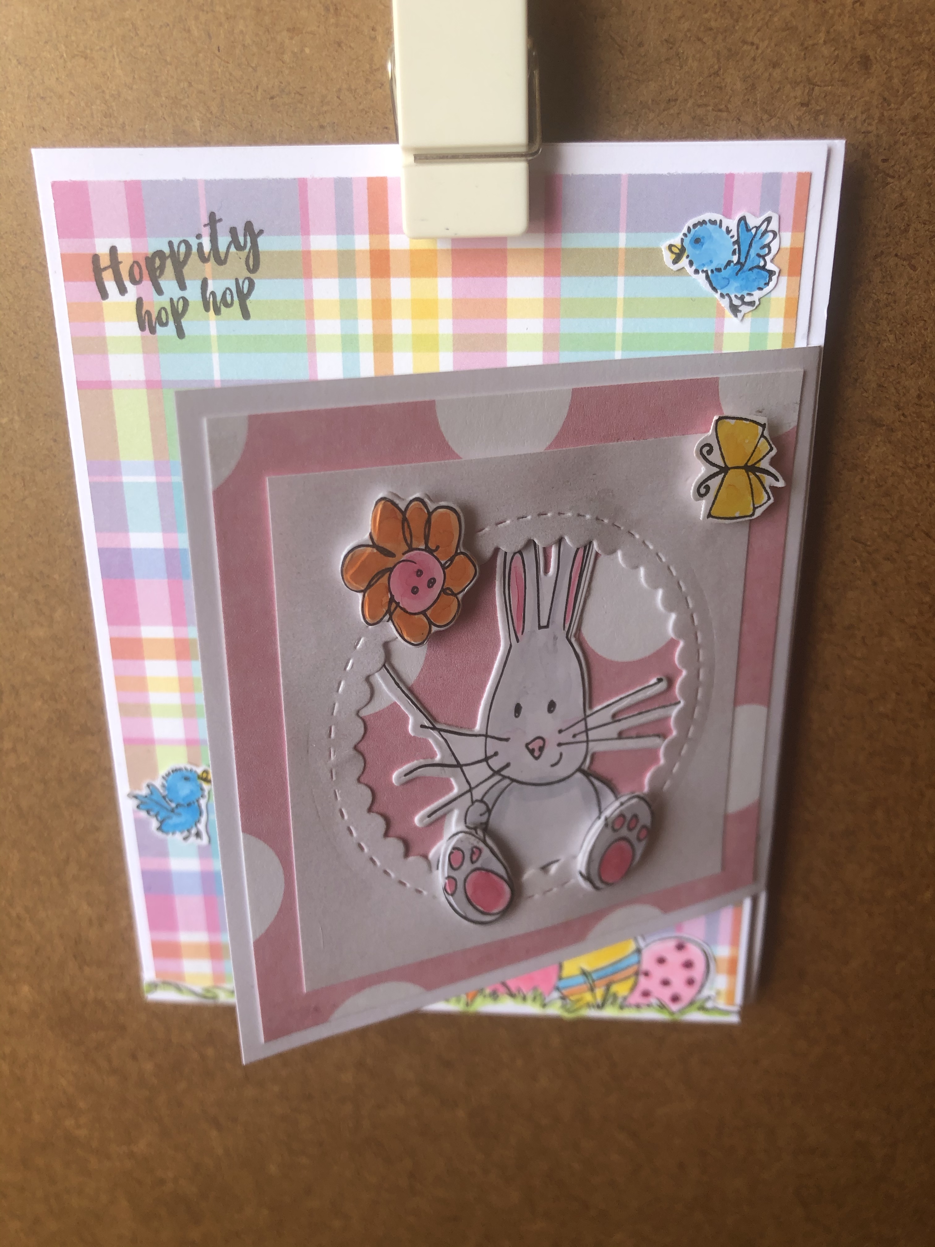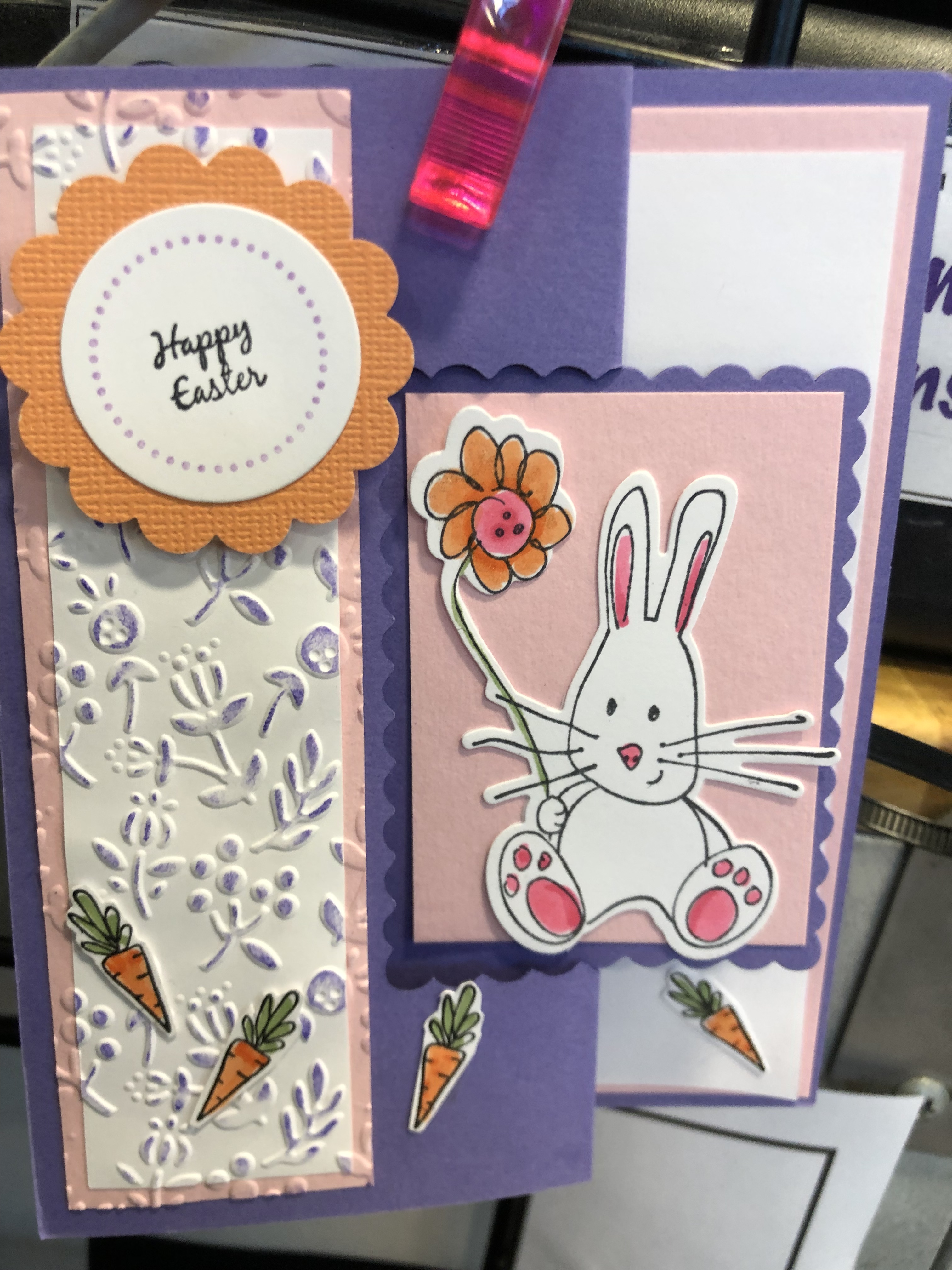 Stamps & Cutting Dies Used: G329 Spring Bunny; A218 One Carrot; DD80 Easter Fun Cube; D311 Easter & Spring Wishes; EE25 Dots & Circle;