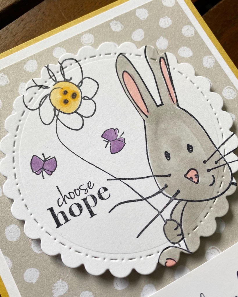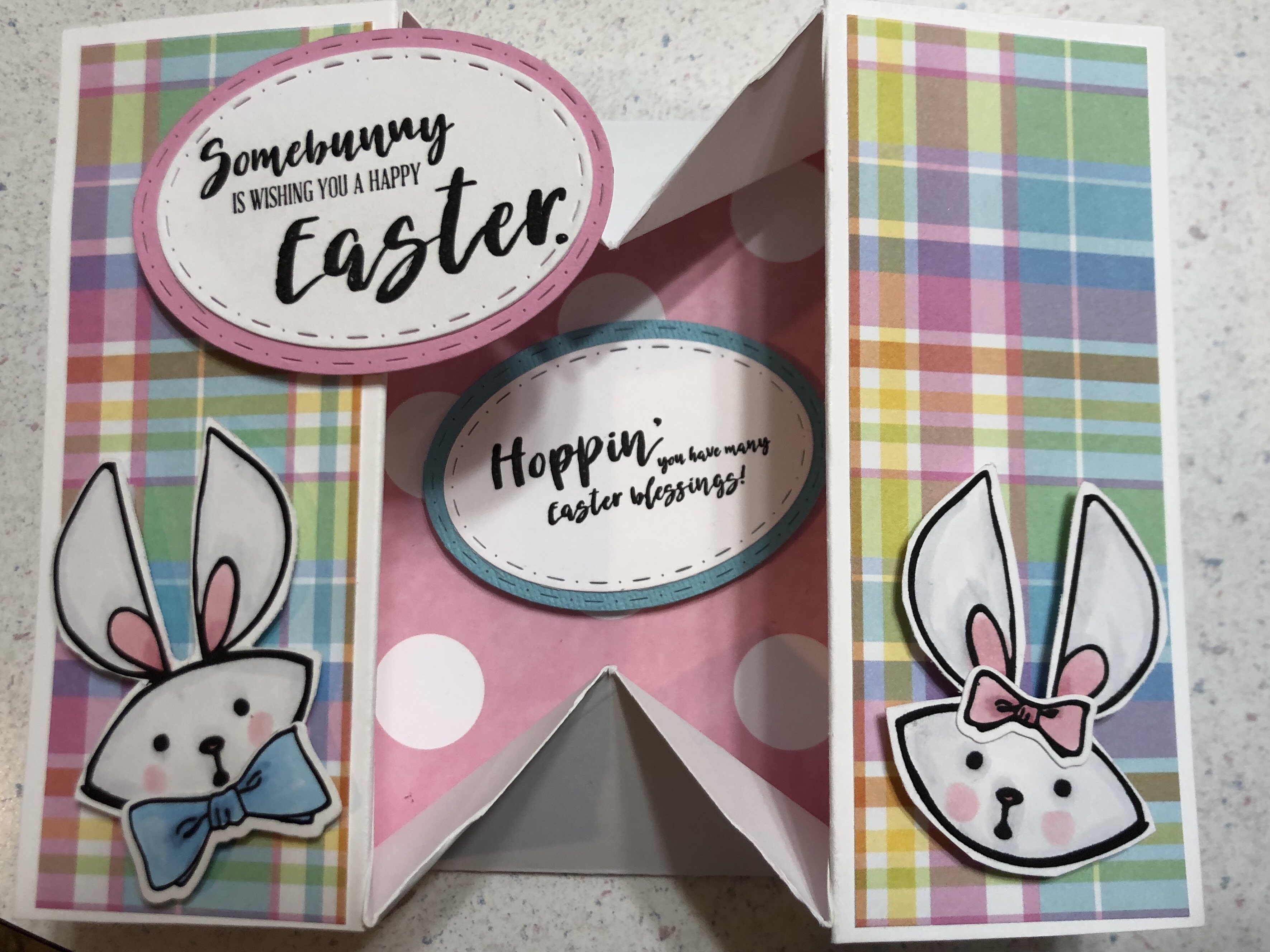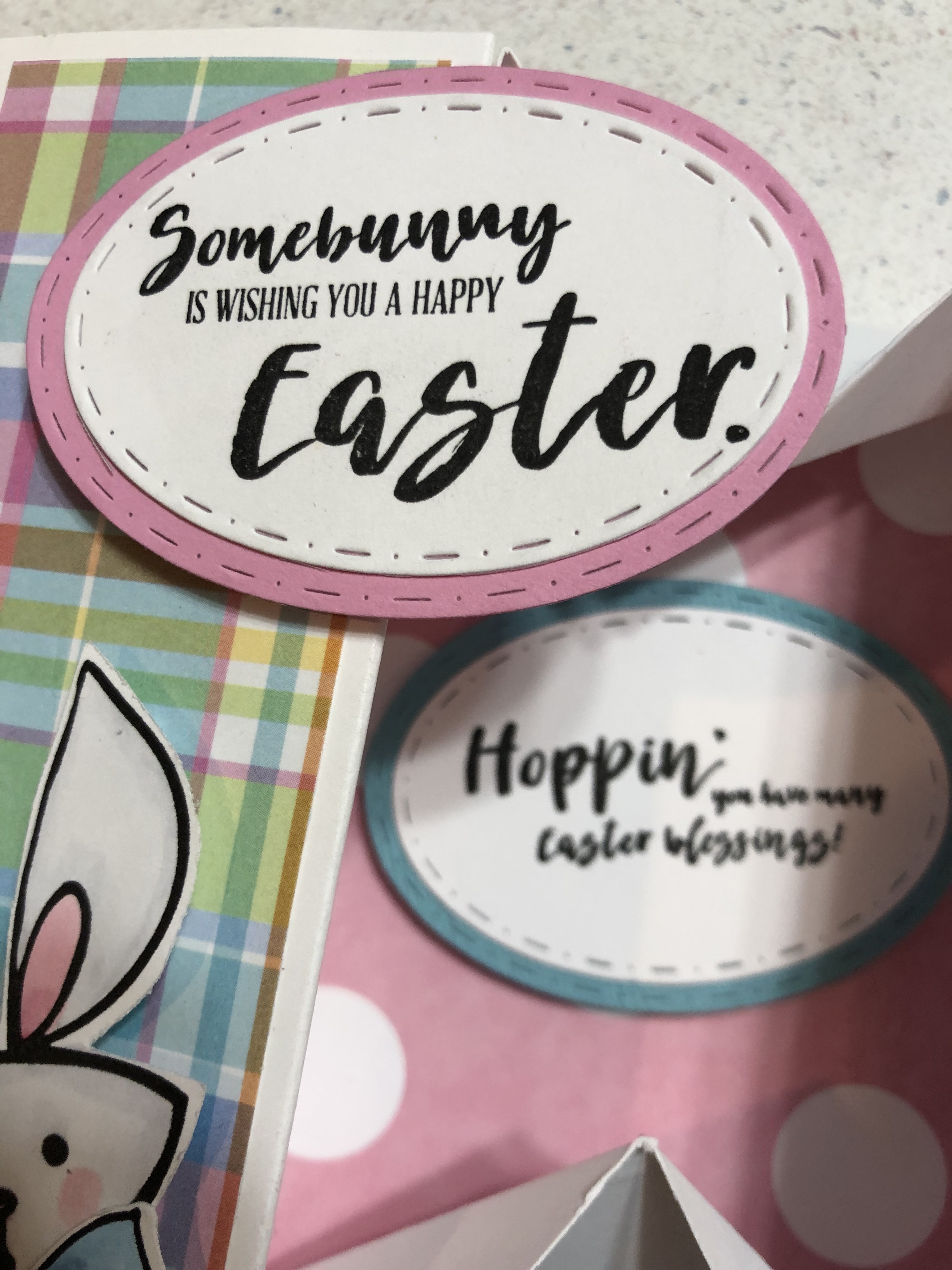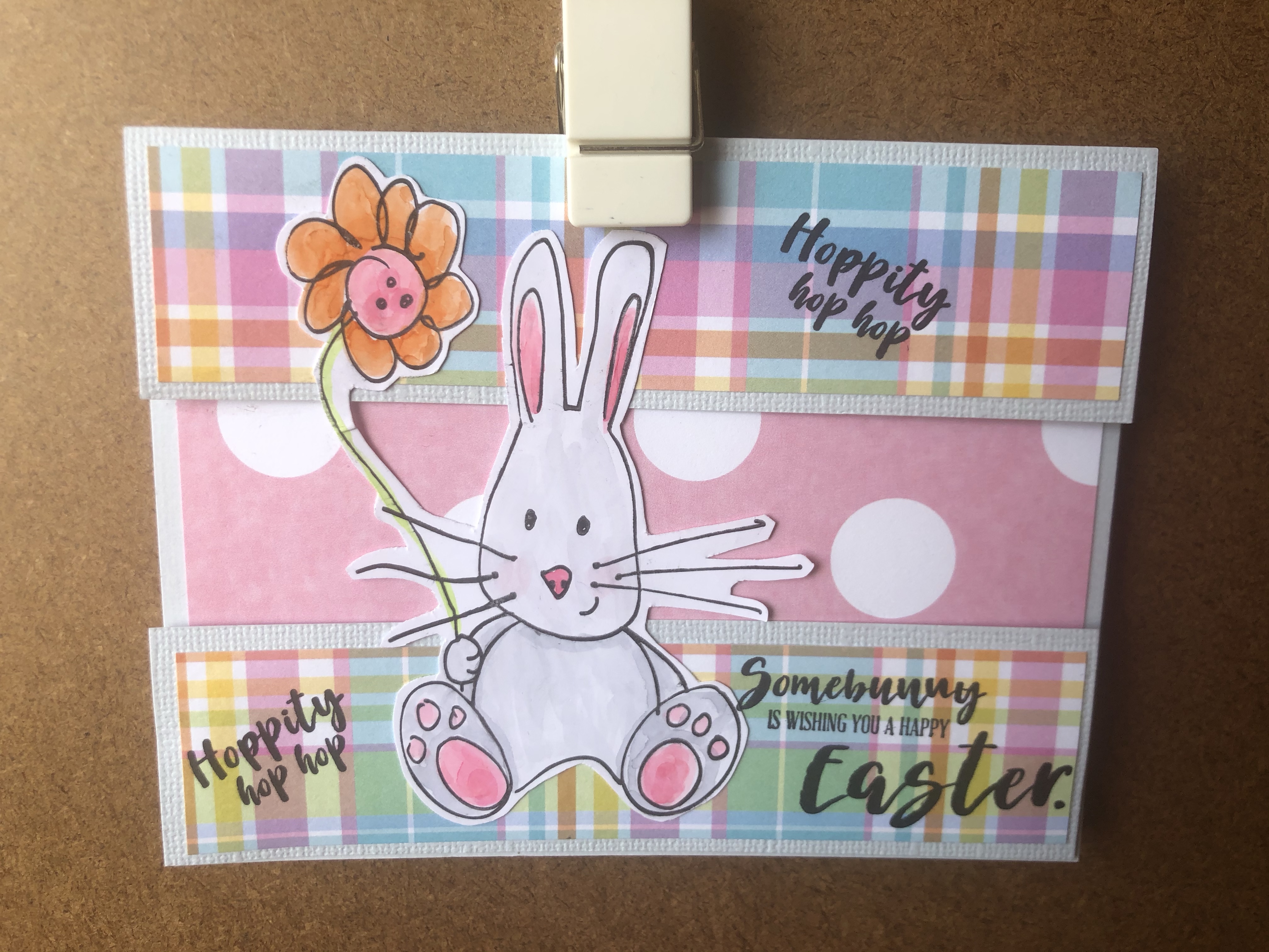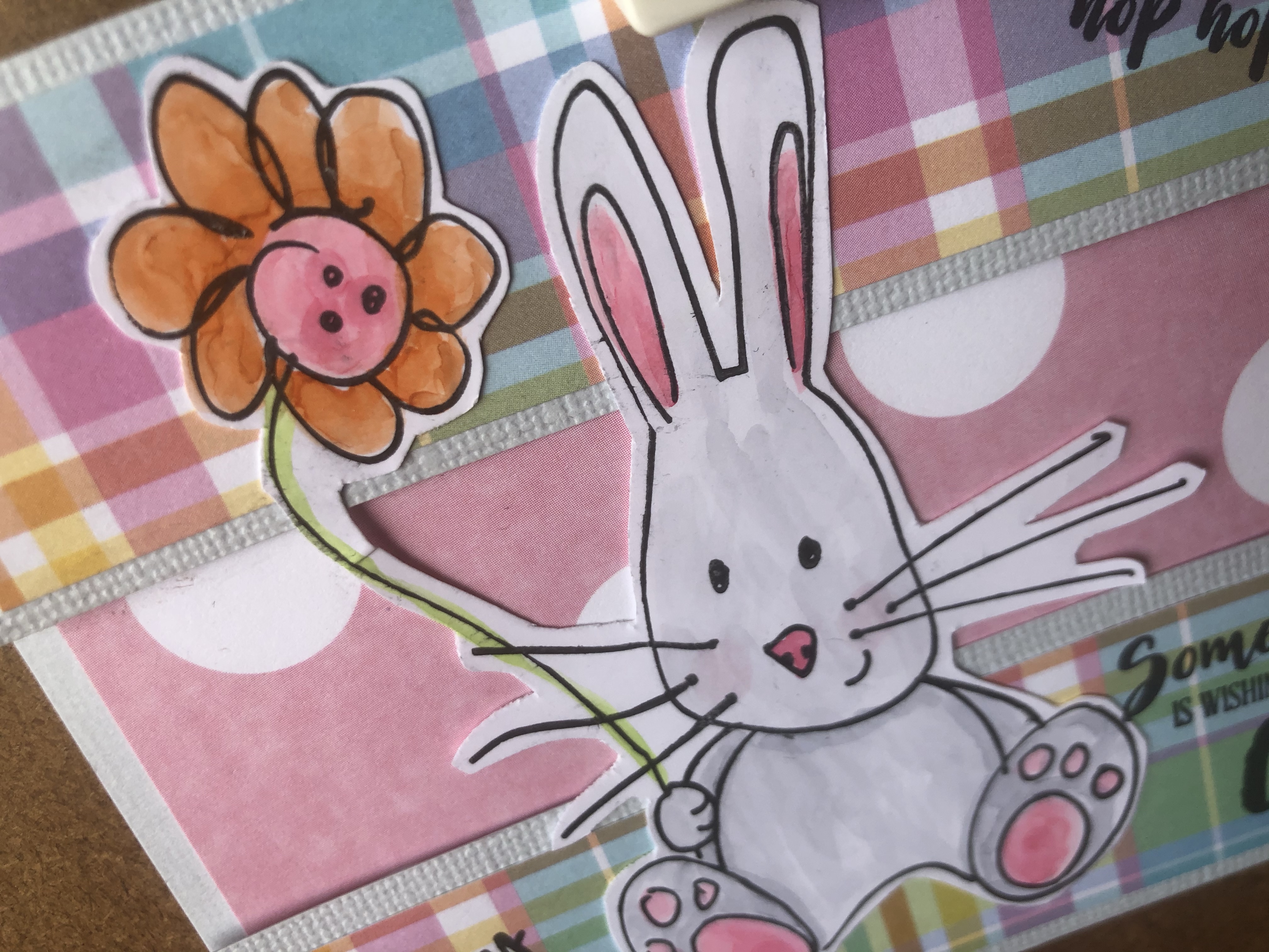 Stamps & Cutting Dies Used: G329 Spring Bunny; A218 One Carrot; DD80 Easter Fun Cube; D311 Easter & Spring Wishes; EE25 Dots & Circle;