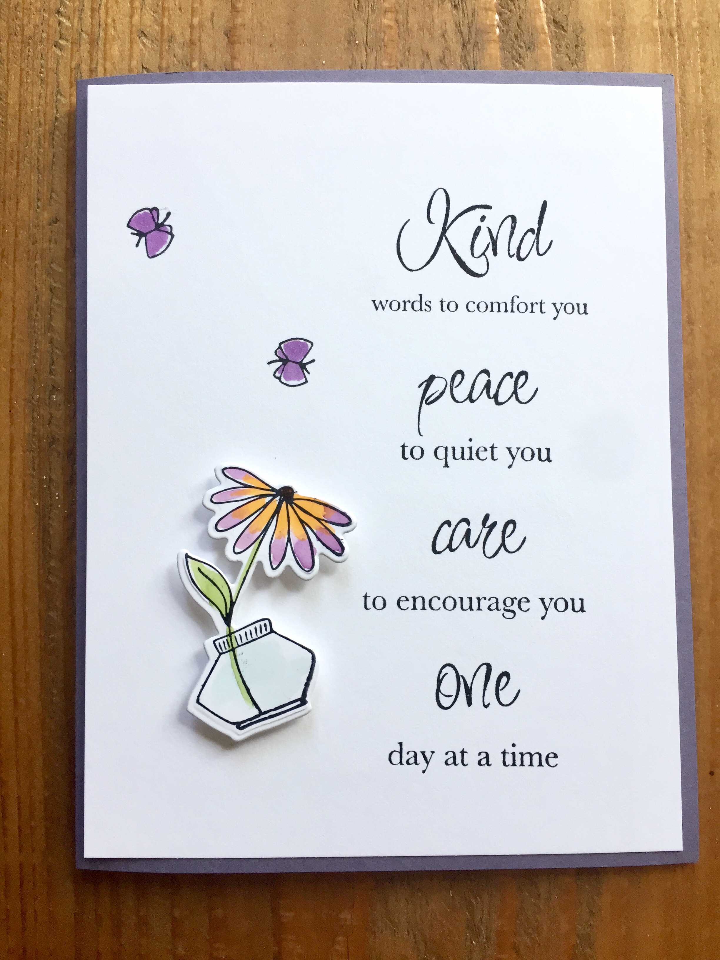 Stamps Used: G339 Kind Words Banner EE71 Potted Daisy Med; AA31 Butterflies;
