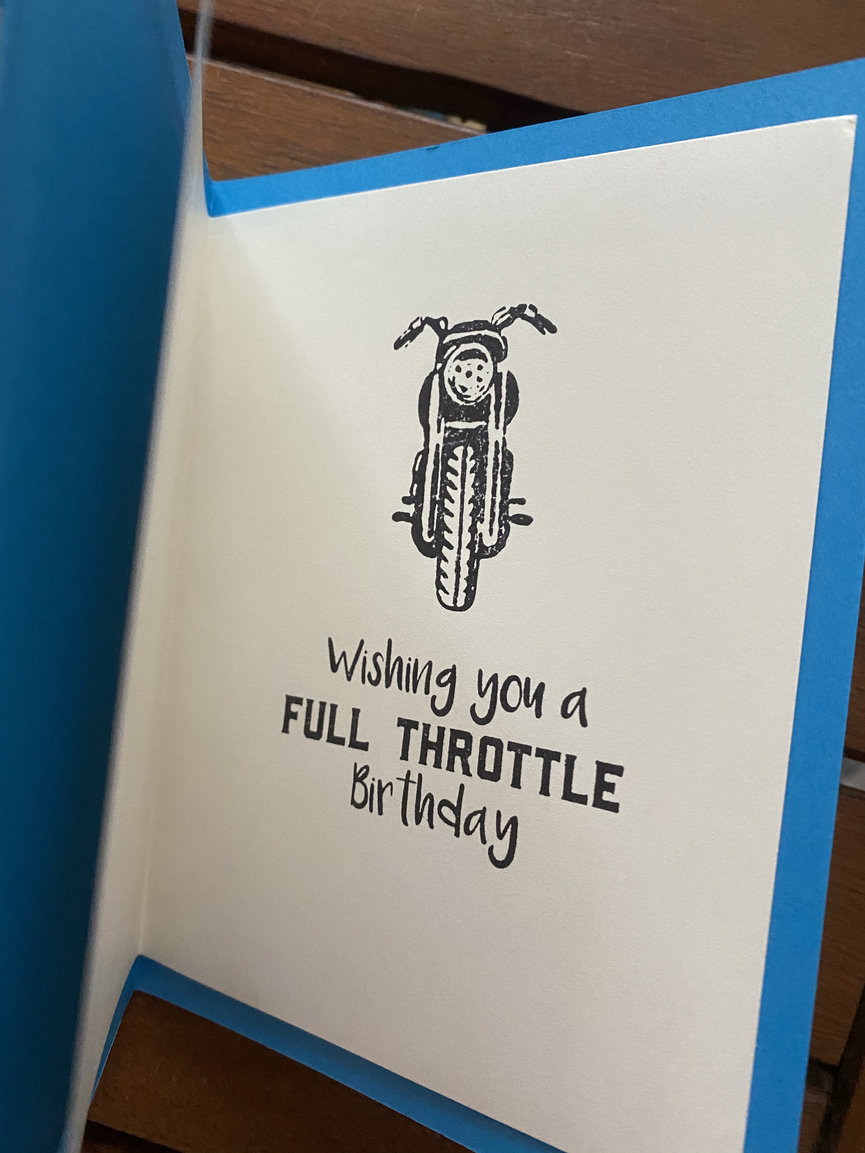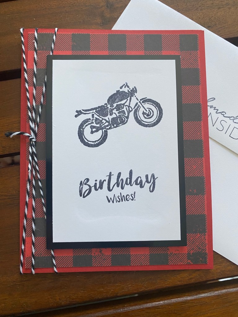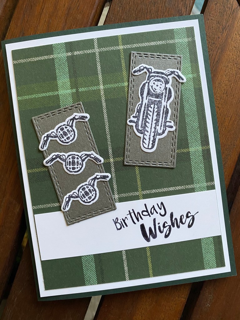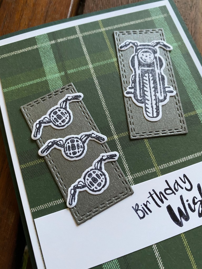 Stamp links: CMO107 Motorcycle Set, Motorcycle Cutting Dies, E315 Adventures Continue, C320 Handmade Card Inside, F312 Happy Happy Happy Birthday, F245 Wishing you