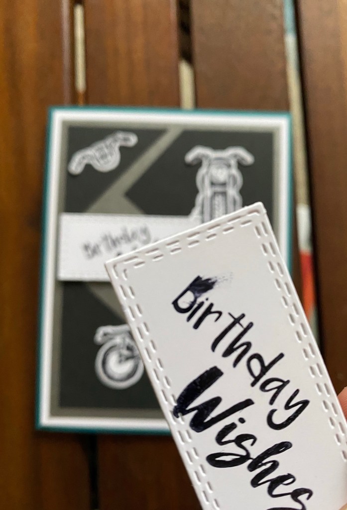 Instead of using adhesive pop ups to add dimension to this card, I just cut out extra motorcycles from scrap paper with the cutting die and layered to pop it up slightly. In picture above, the top card has two layers and bottom has three. Can you see the difference?