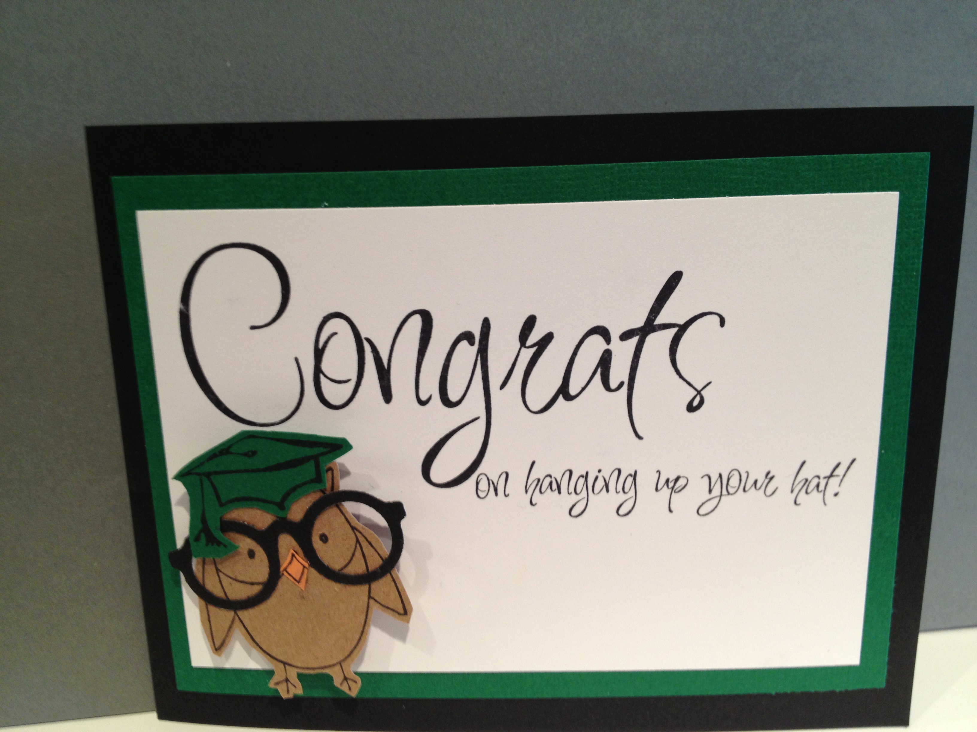 Stamps Used:DD52 Clara Owl; B134 KB’s Grad Hat; H108 Congrats; E171 hanging up your hat