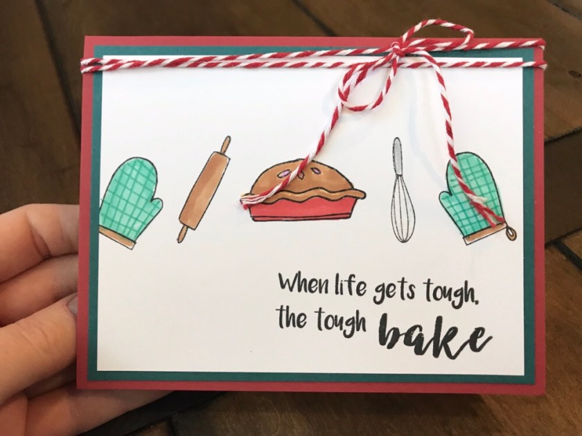 Stamps Used: CC83 Oven Mitt Sm; A255 Whisk Sm; A254 Rolling Pin Sm; C292 Apple Pie; F291 Tough Bake;