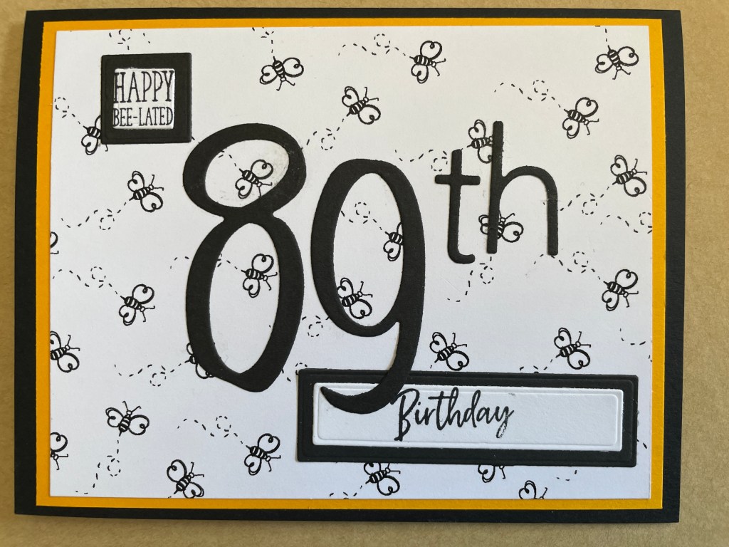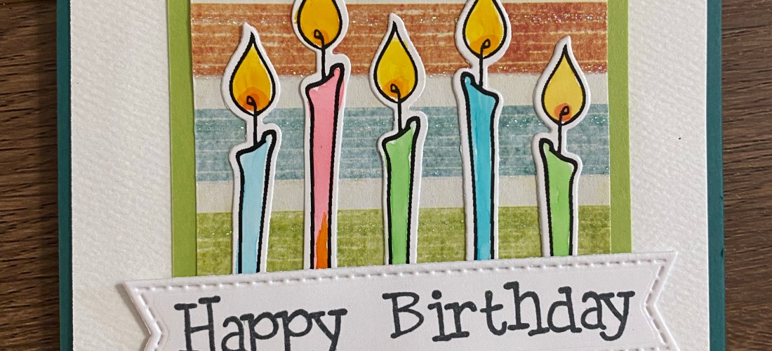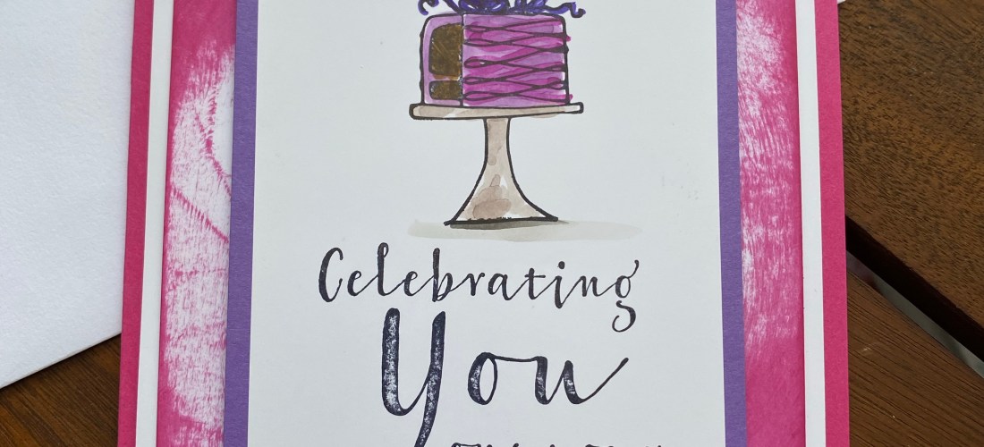 Here is another birthday card with four stamps. I used scissors to cut out the square with birthday wishes and the potted aloe plant has a cutting die. The background calendar paper is recycled from an old wall calendar (originally from Target). I kept it to reuse because I love the gray.