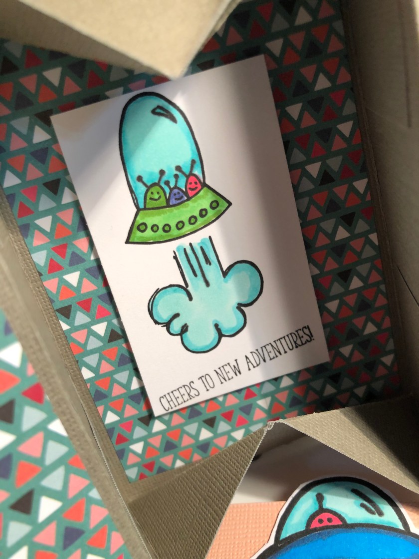 This box card was one of the first I cut and scored- and it’s a little wonky. You have to be very precise when scoring paper for box cards. The more you do the better you get at it!