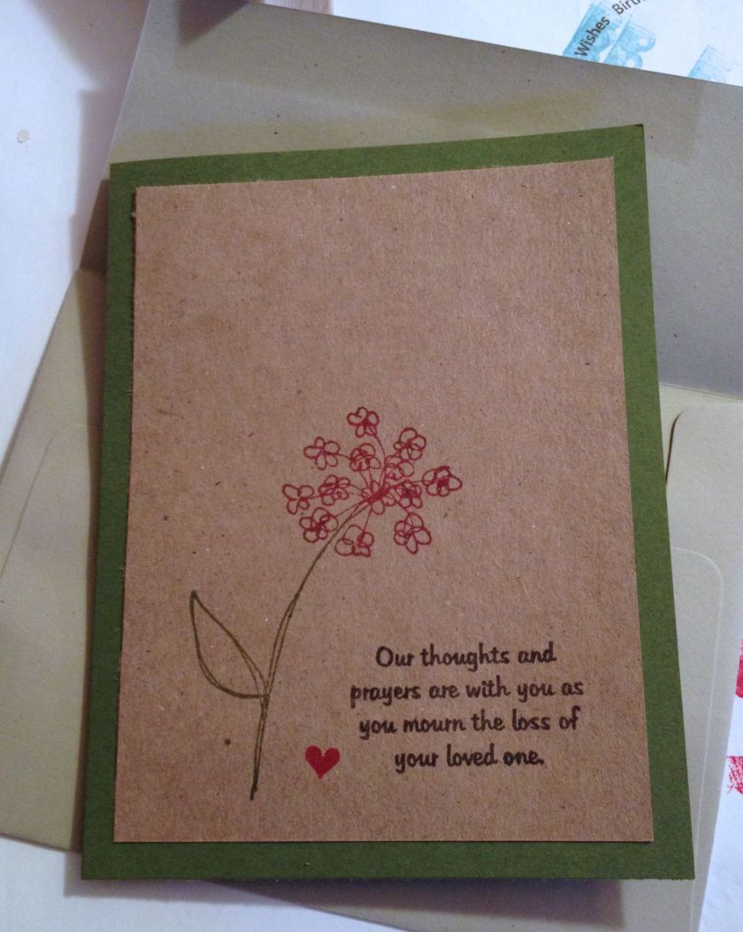 Had a surprise visit from some friends this weekend who were in town for a funeral. It was so good to see them even though we didn’t have a lot of time. Luckily I was able to stamp this card when we realized they needed to leave in under ten minutes and didn’t have a card. Stamps used: A190 (heart), GG29 (flower), C145 (words)