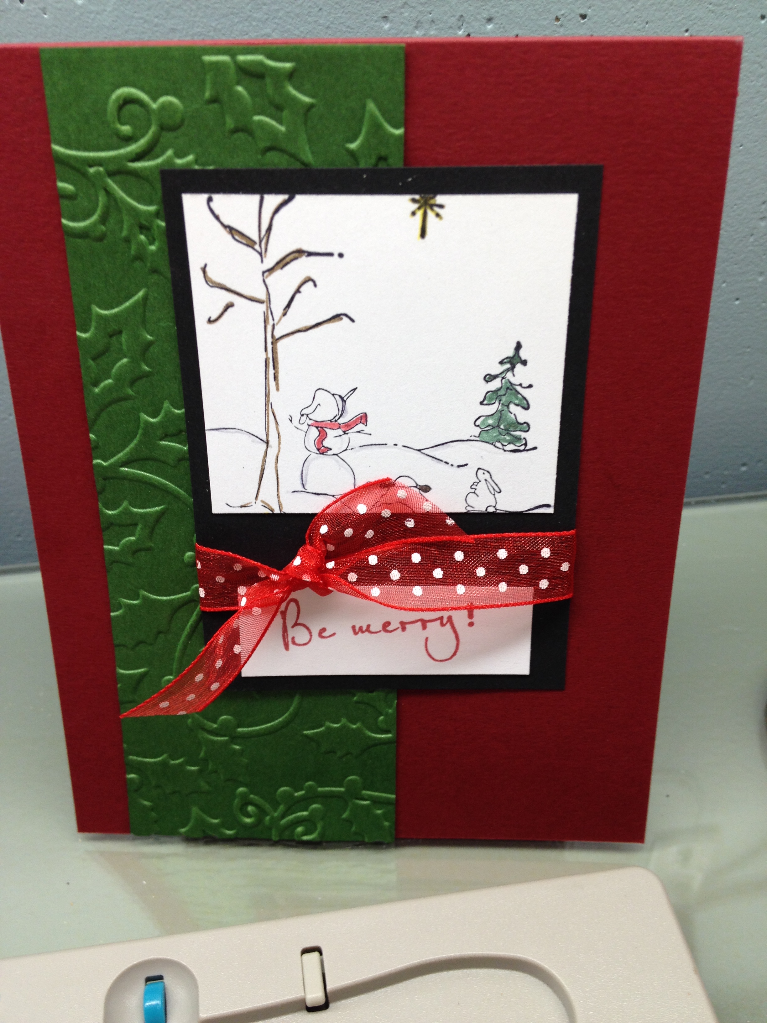 Stamps Used:  G205 KB’s Snowman Scene & C215 Be Merry!