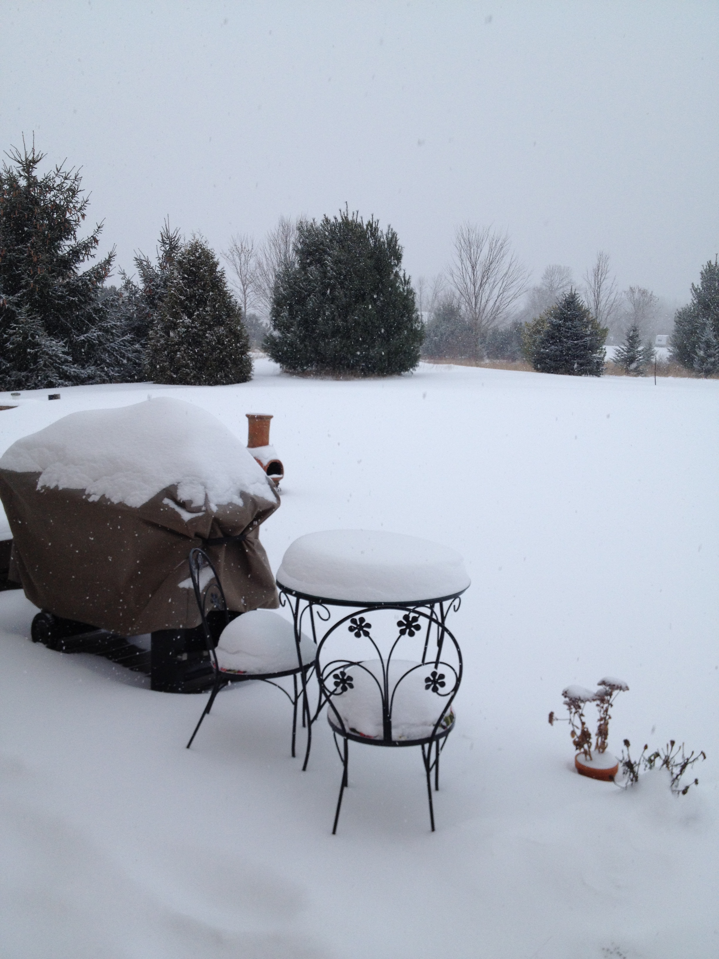 I had to take a picture this morning. It’s snowing again!!! If you look at the trees you can see all the snow coming down. It is so pretty! Have a great weekend!
