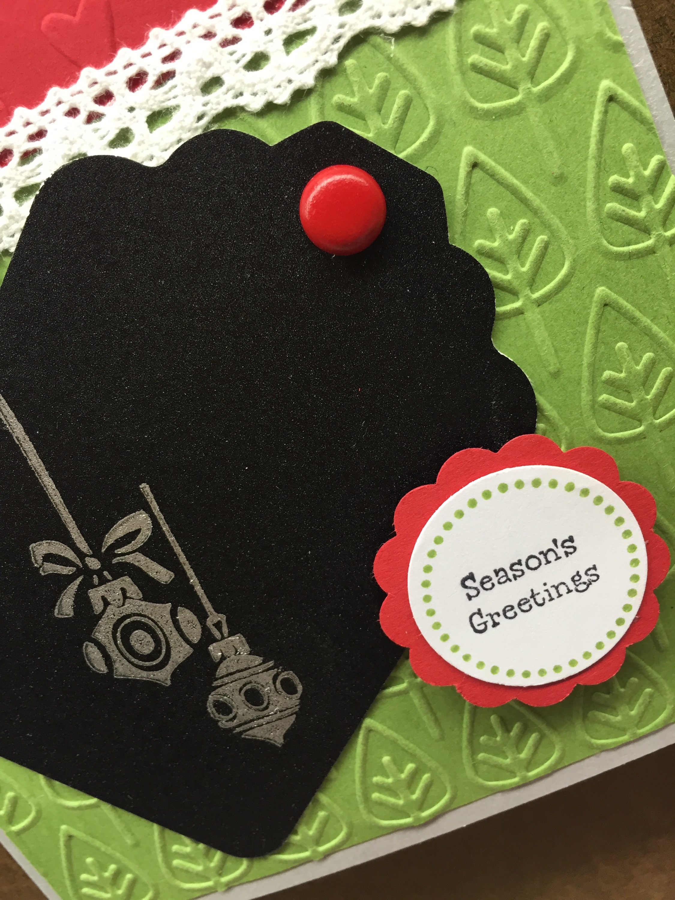 I’ve been seeing these doors on Pintrest and have been wanting to try them! I really love how the wreath came out on this one. I used Lifestyle Crafts Scallop and Circle dies since they have soooo many sizes. I punched out with creme paper and then with jelly bean green ink and our pine branch I stamped the branches. Of course I had to include a fun cube…the sending fun cube which is one of my favorites!