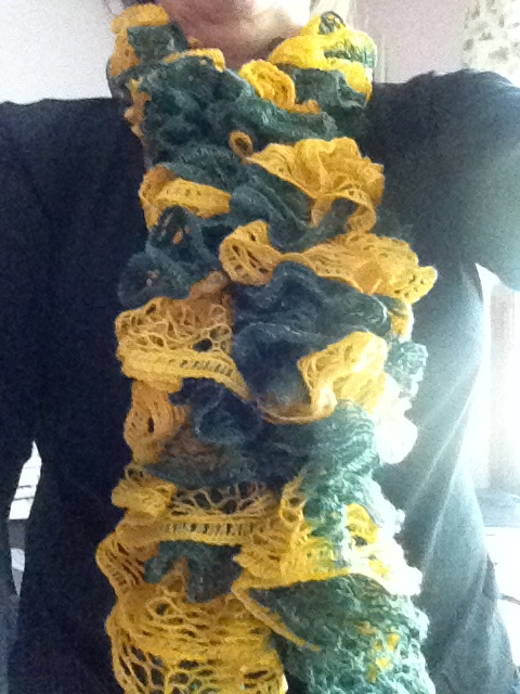 Sandy, an Endless Creations and Packer Fan, sent me this little package. Anyone who follows NFL football probably knows that the Green Bay Packers (our team!) is in big trouble with out quarterback Aaron Rodgers out the last five weeks and maybe more?? We have not won a game since so I love the sign almost as much as I love the scarf! Thank You Sandy and Byron!