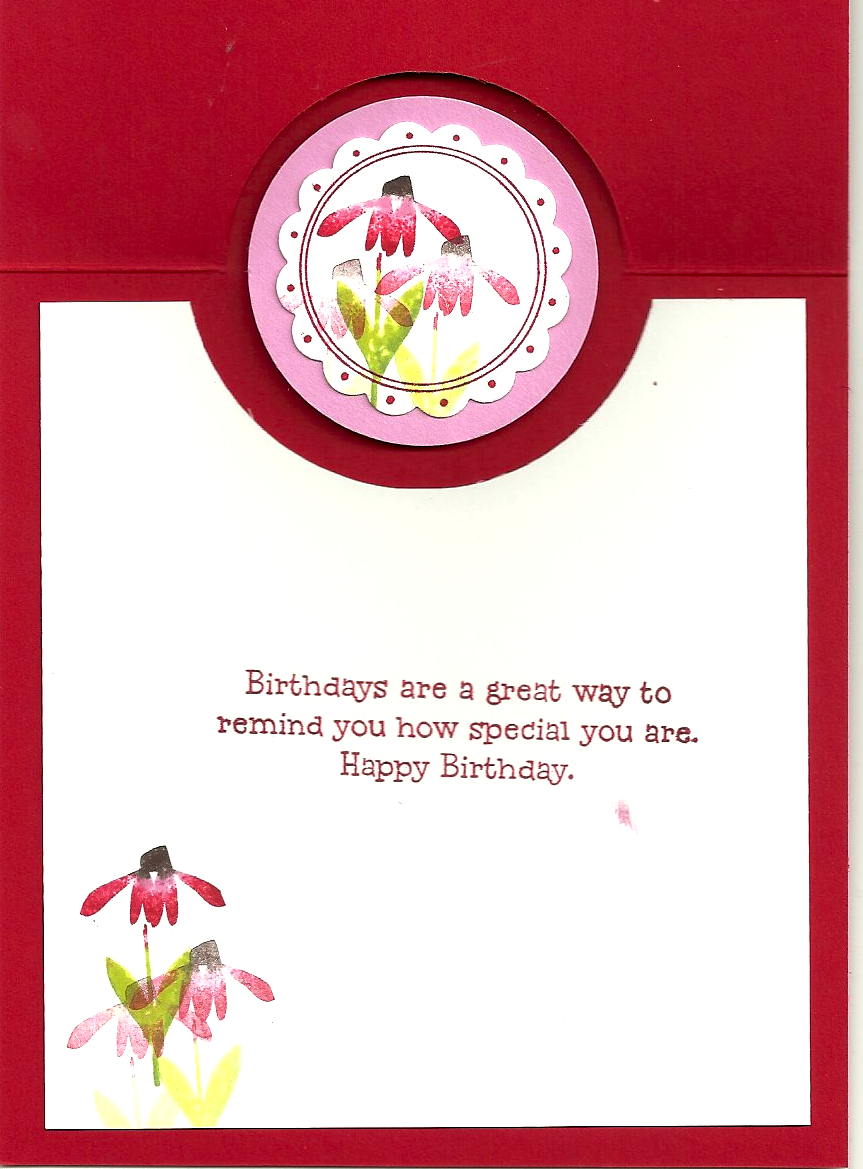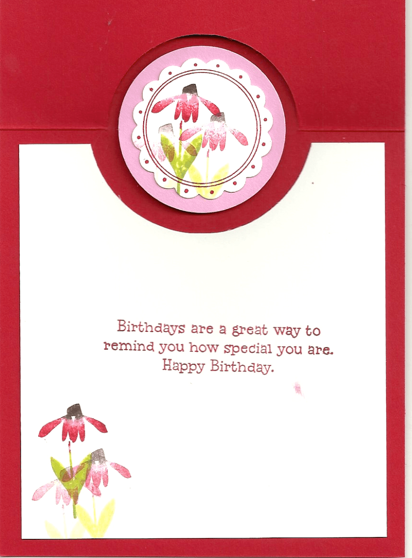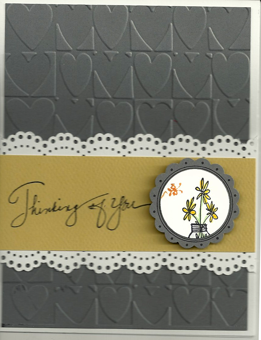 Not so happy day for me…my internet keeps going out and I finally gave up this morning and went shopping! Why not? 🙂 Love the colors of this card…I think yellow is my new favorite color. The bottom of the flags were done with a square punch.