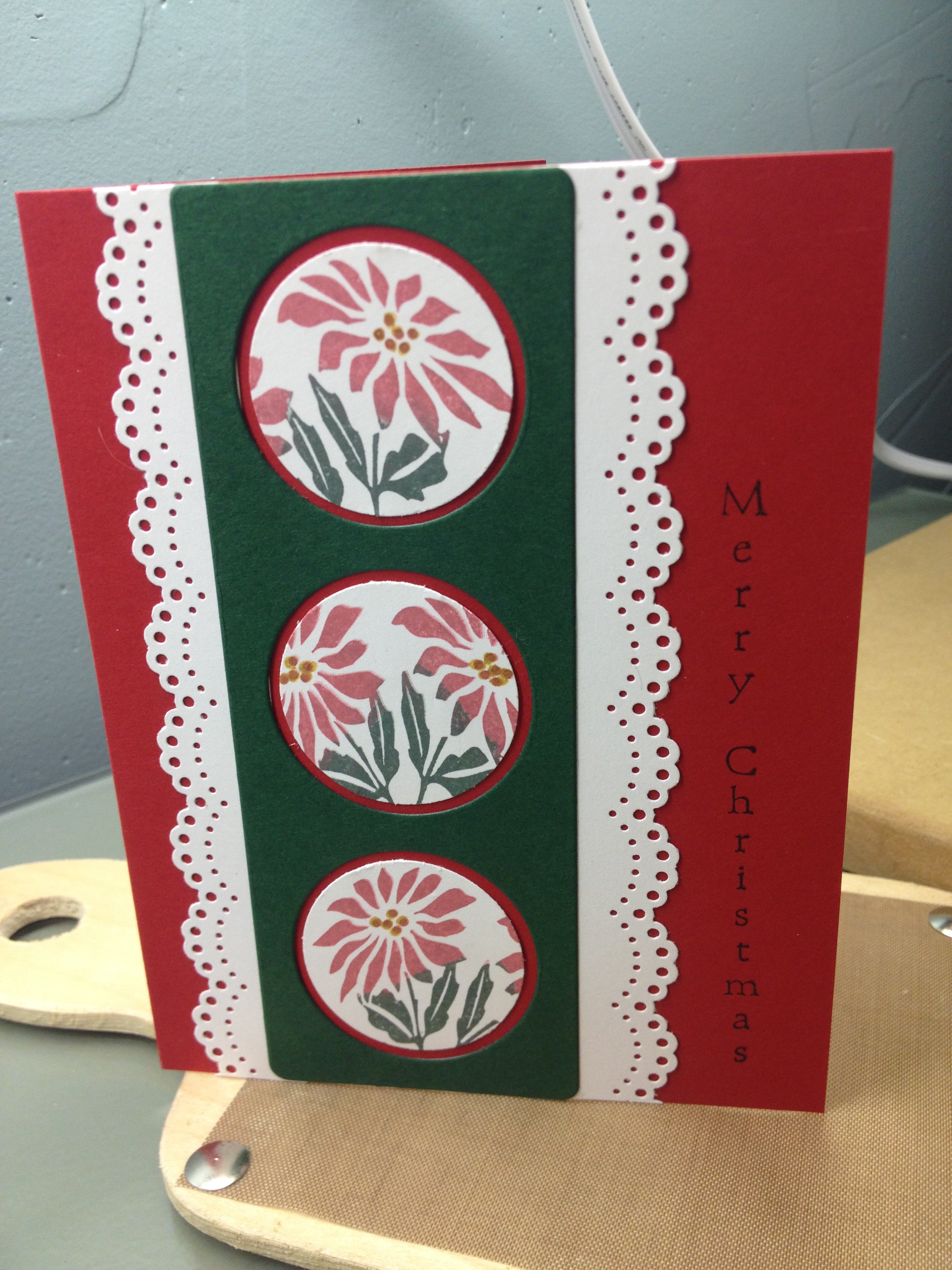 Stamps Used: G251 Double Solid Poinsettia Lg, C165 Double Solid Poinsettia Sm, E209 Christmas Reason Rejoice, F72 Merry Christmas Vertical Lg