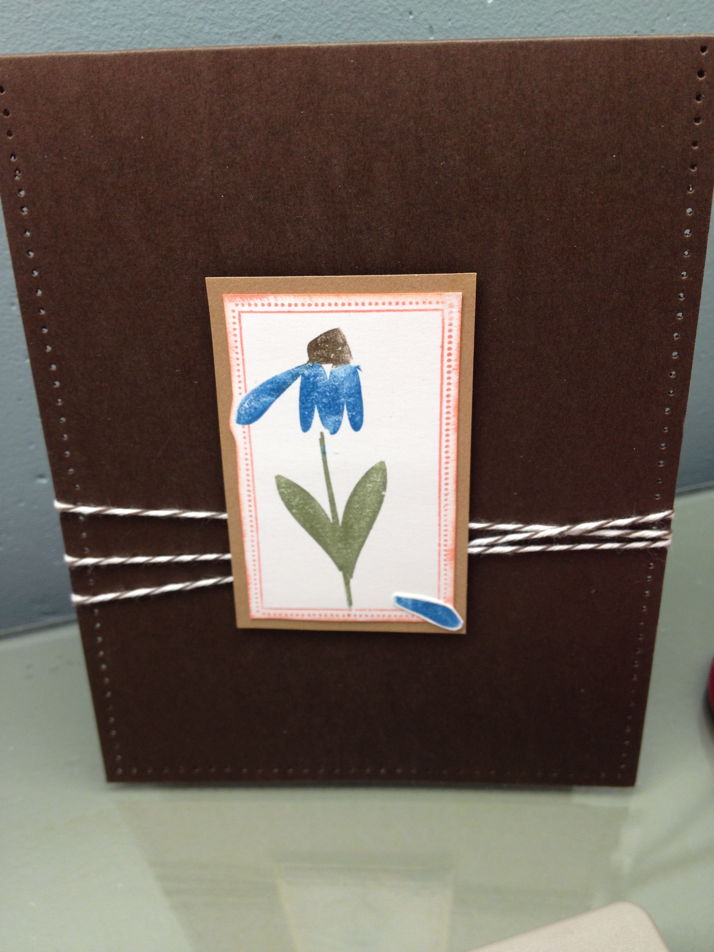 this was one of the cards we received in condolence that I told you about yesterday. I love the way she put the petal fallen at the bottom. so thinking outside the box!