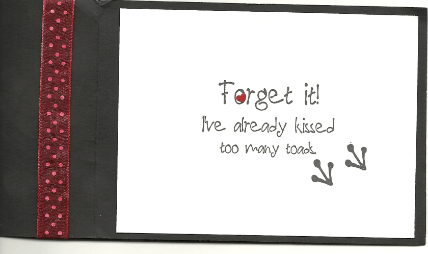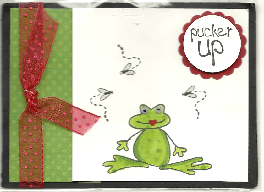 Today’s card will be added to the Make n Take schedule. It’s a fun frog card. Stamps Used: BB54 KB’s Flies sm, J30 Happy Day Banner, B204 Time’s Fun, D231 KB’s Frog Med, D228 Hoppy Birthday, F205 Birthday Toad-ally