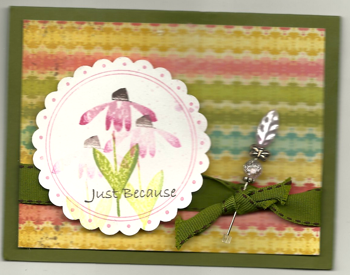 This coneflower is one of my favorites and I love Hat Pins. Sorry the picture is not so good! 🙂