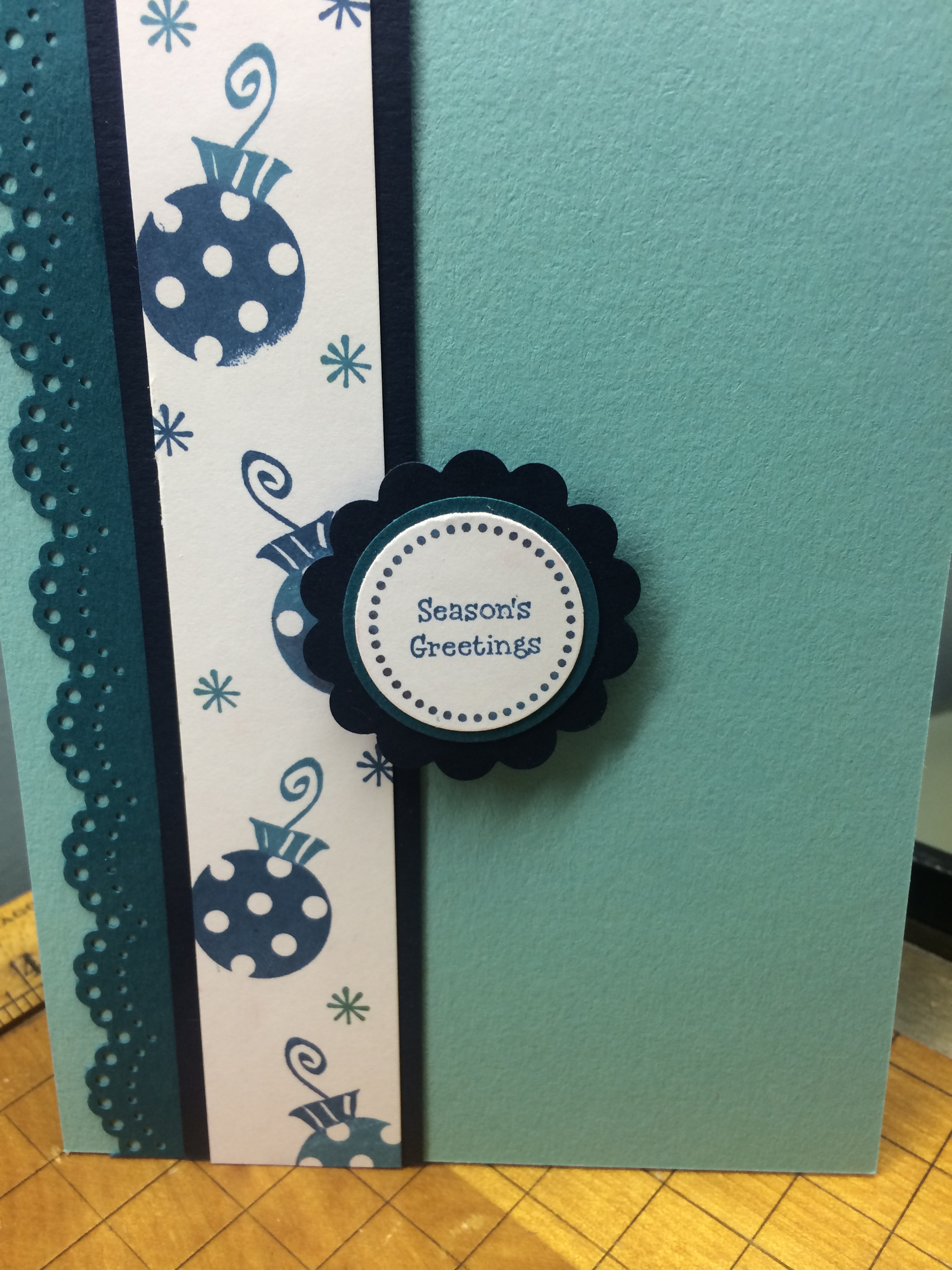 Today’s card features the F237 present that we’ve been using lately in a Christmas Card. Love the Teal and Red together.