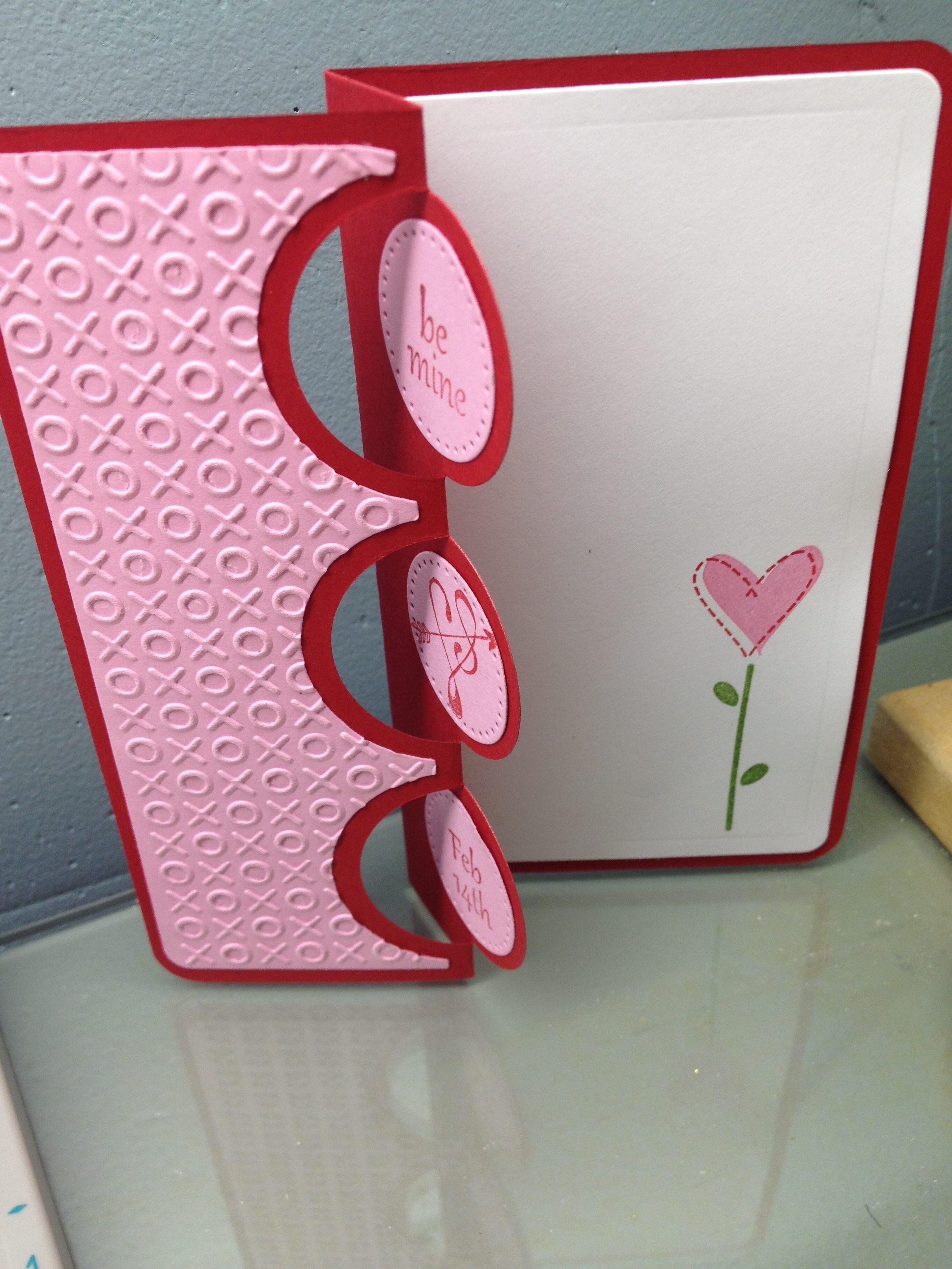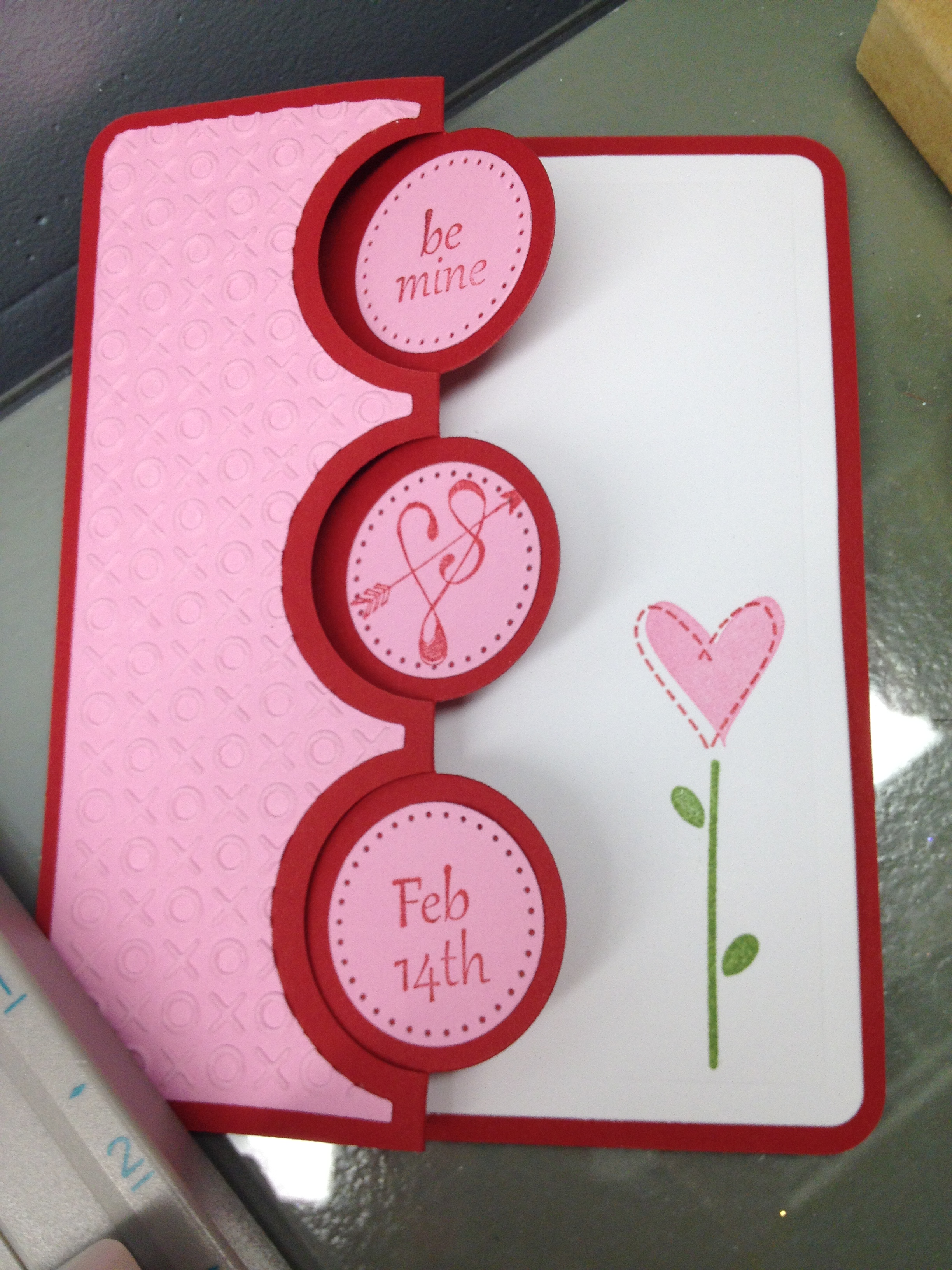 a simple valentine’s day card this morning…The circle is actually punched out and the top layer is 3D popped out! I feel really bad because during the show in GA someone asked me where this XO stamp was and and went to show them and someone else asked me something and I forgot the XO person and then I couldn’t find her 😦 hate when that happens! So I apologize to anyone I didn’t get a chance to help.