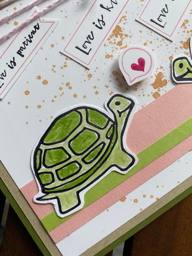Back with Valentine’s! On this card, the heart border on the left was created with A190 Tiny Heart stamp. The owl was colored with alcohol ink markers. Don’t look too close to the words! I was using dull gloss paper and my hands had some lotion so I smudged it a bit when I was glueing the pieces together. 🤦🏻♀️