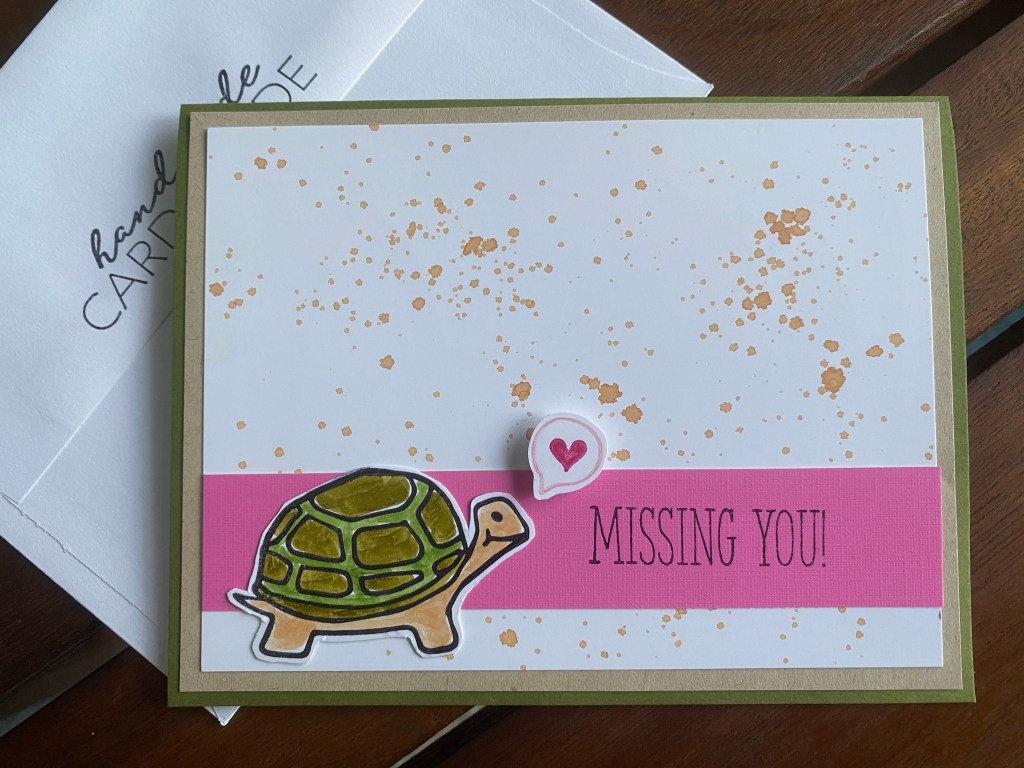 Only a few days left until Valentine’s day! Has everyone sent their cards already? This card can really be for any time you want to let someone know you are missing them but we chose the pink just for Valentine’s.