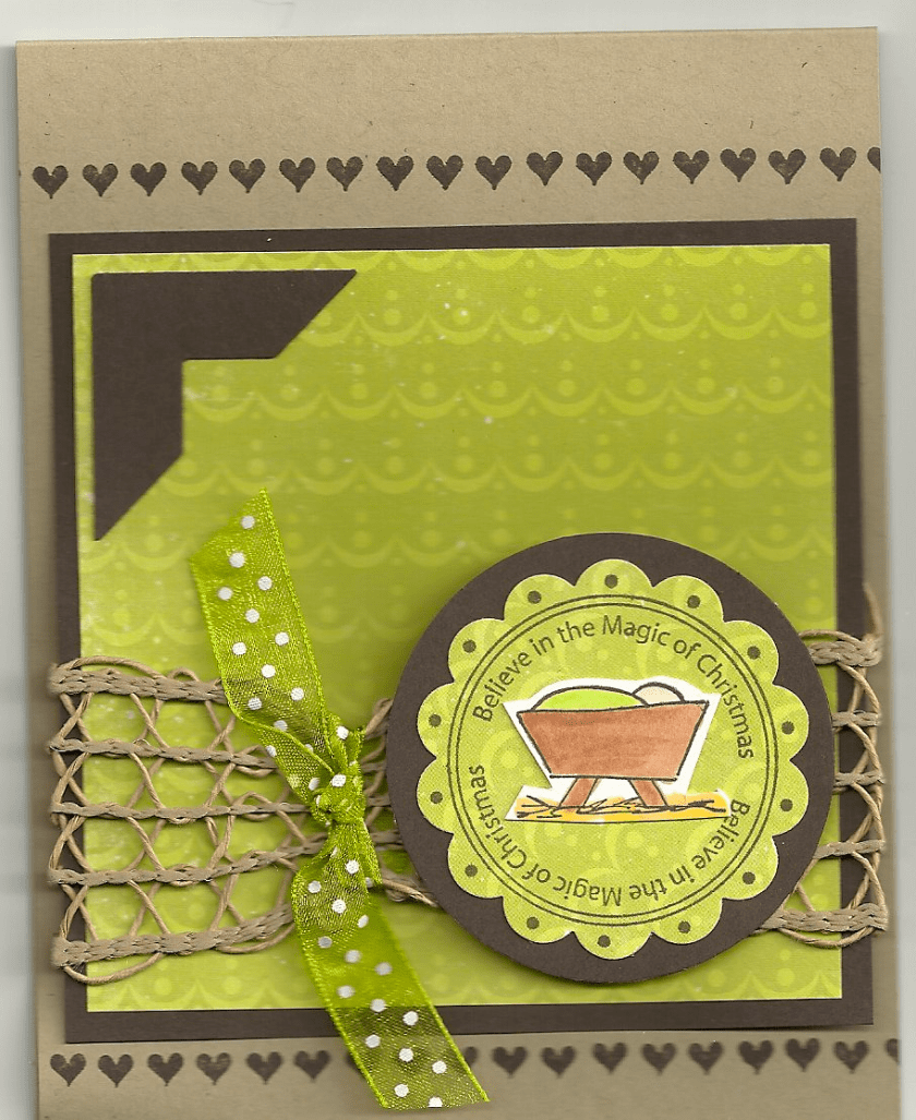 The really fun triple circle z fold cards have gotten me thinking of other fun cuts to do on cards. Here is a 1/2 cut done on the bottom of this card. The inside is only 5″ and I would have liked it to be 5.5″ but needed 13″ of continues paper and since there is only 12×12 paper, I just could not get it any bigger. This is a new size for our little snowman.