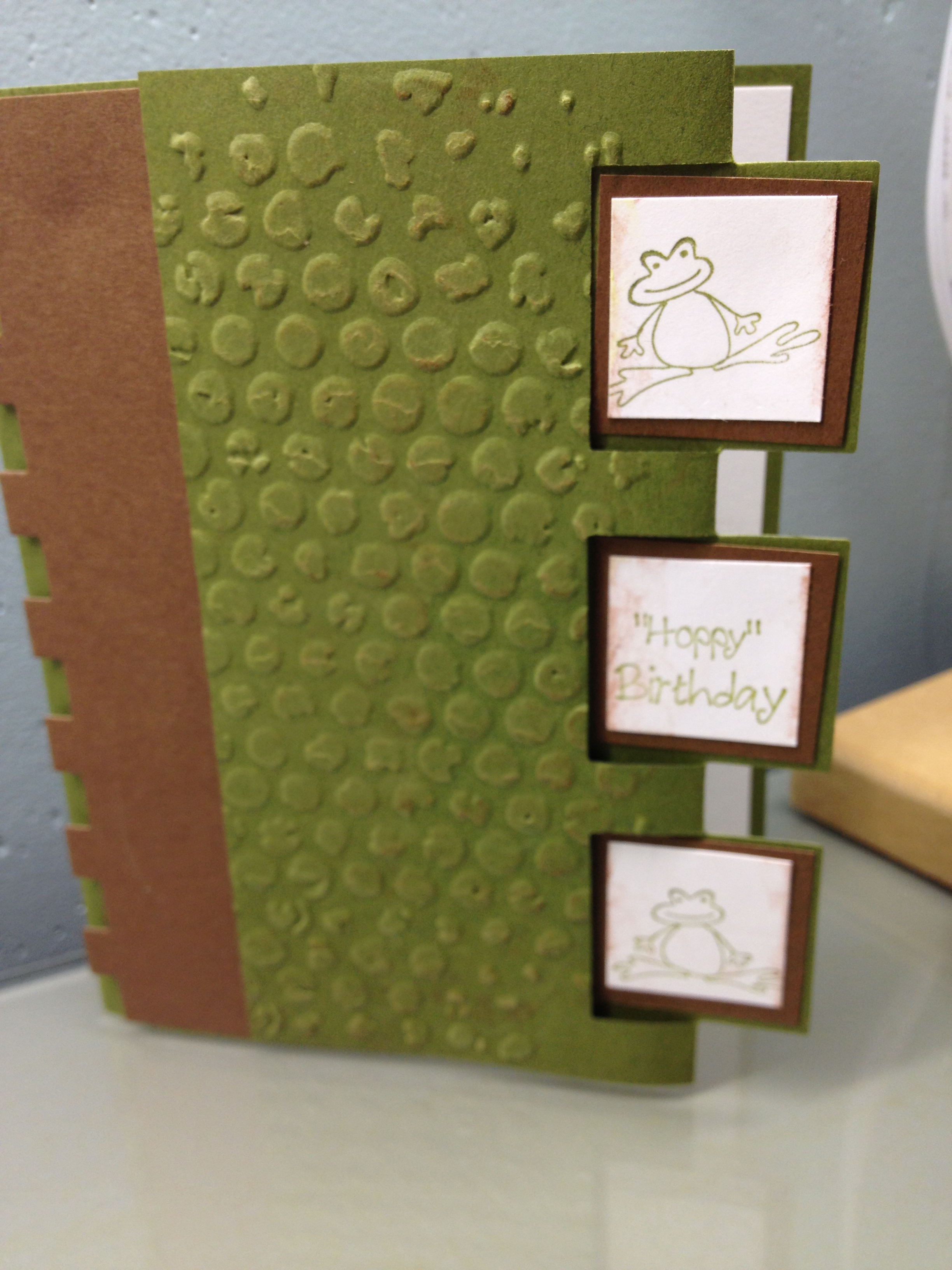 Here is a card with my sq sizzix die that I cut! I usually cut the paper at 5.5″x either 10.5″ or 11.0″ if you cut it longer you can always adjust but cutting some off. Always better to error on the cautious side. I then score at 4.25″ and then flip the card around so that I can place the die edge at approximately 4.25″