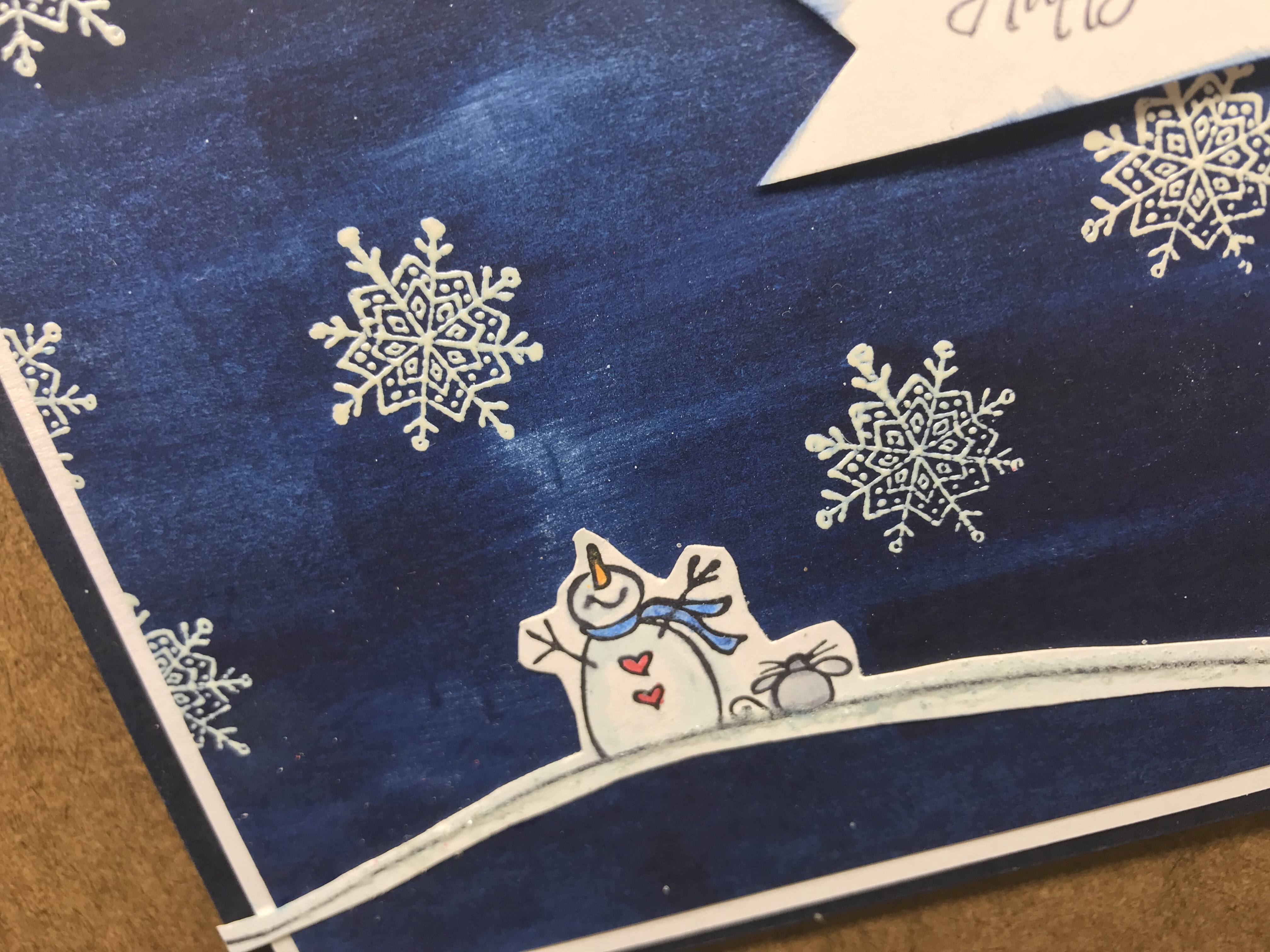 Stamps: G364 Heart Joy, EE37 Snowman Looking Up Plain