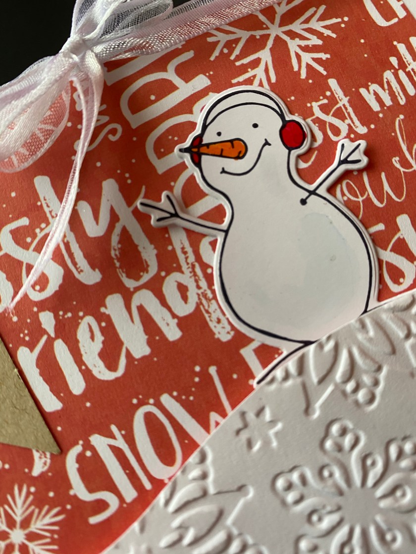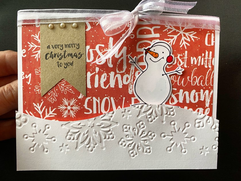 Stamps and Cutting Dies Used: EE47 Ear Muff Snowman; C311 Very Merry Christmas; C320 Handmade Card; C245 Handmade in WI;