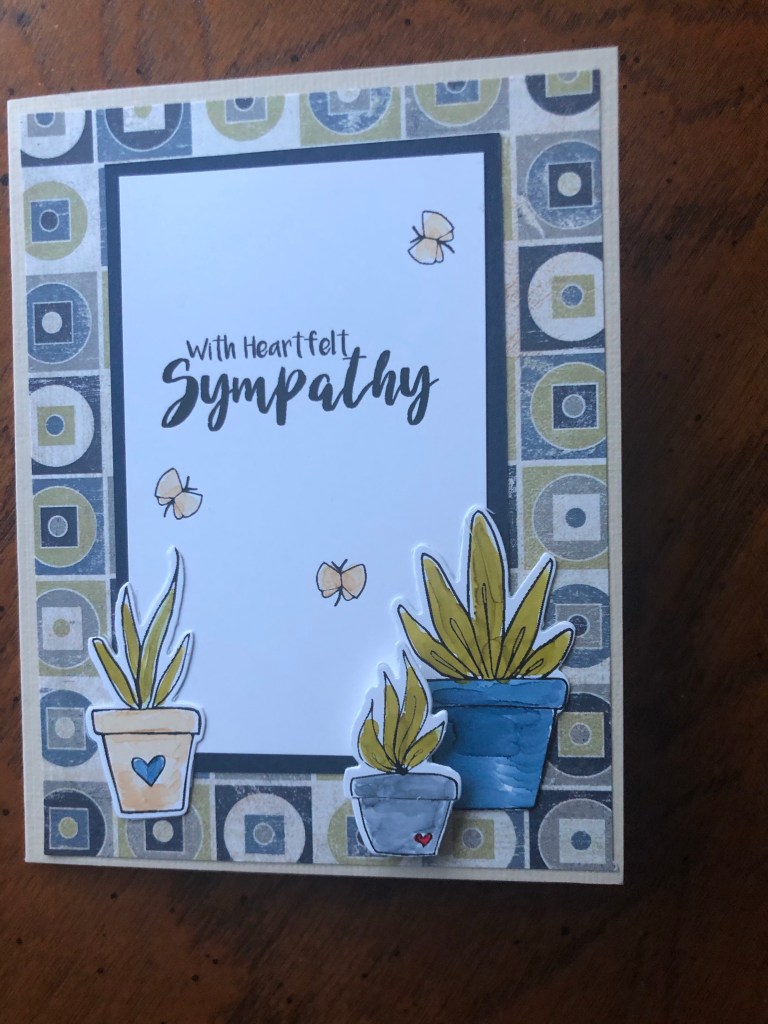 Good Morning. There is always a need for sympathy cards. I always like to have a few on hand so I’m ready when the need arises. My stash is growing since all the cards don’t end up as demo cards in the booth!